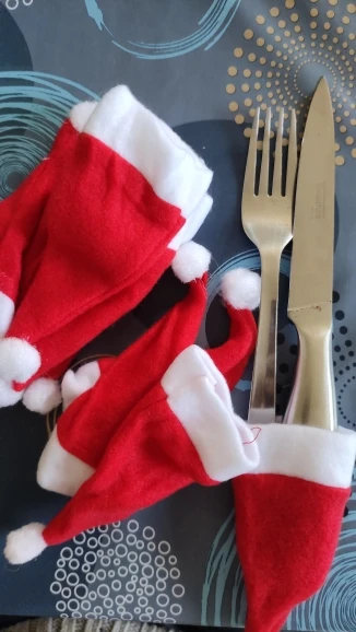 Красивое маленькое украшение рождественской шляпы. Меньше, чем стандартные ножи и вилки.
