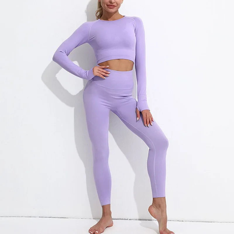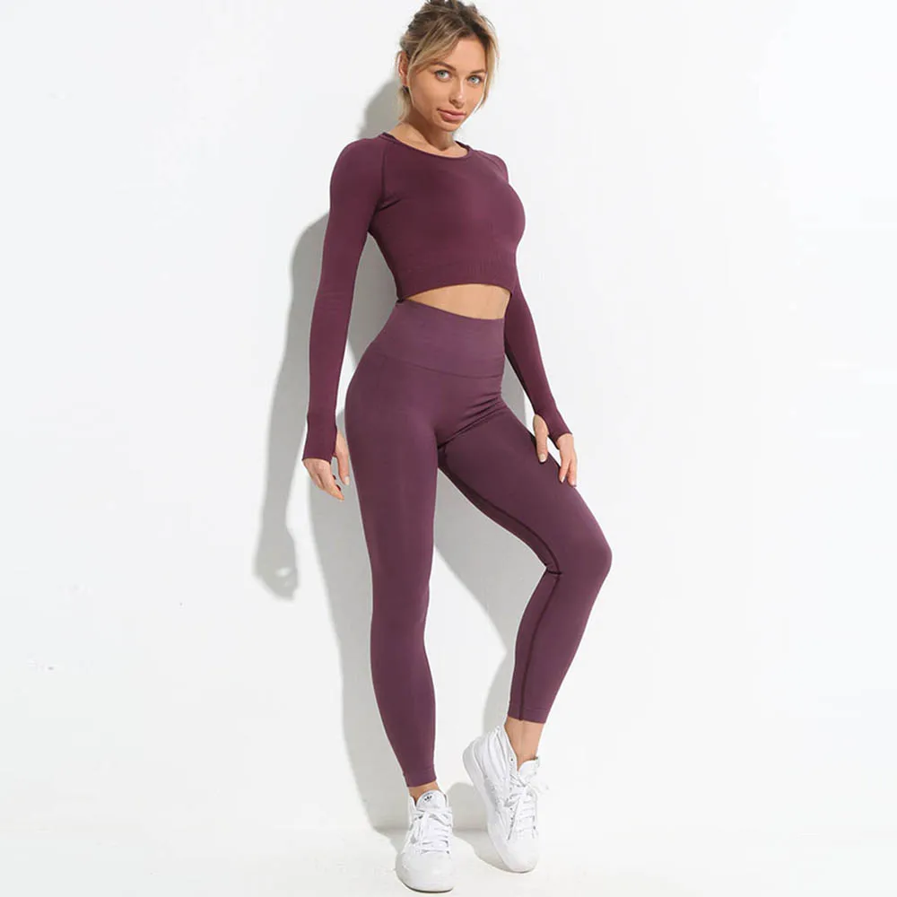 Комплект Спортивный Женский, бесшовный, с длинным рукавом, леггинсы