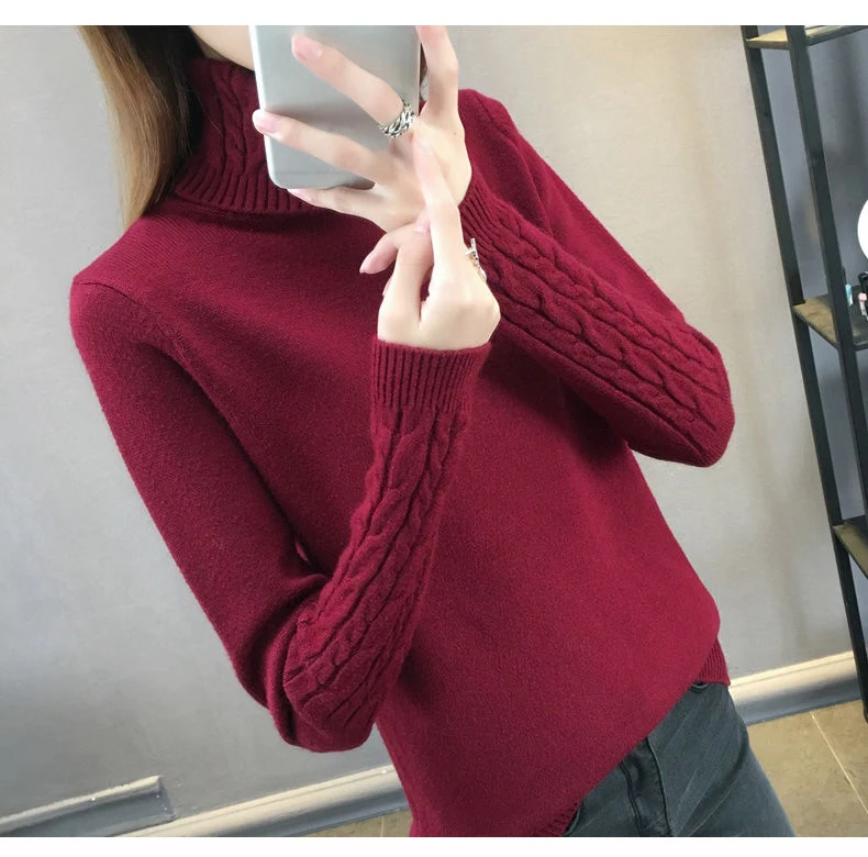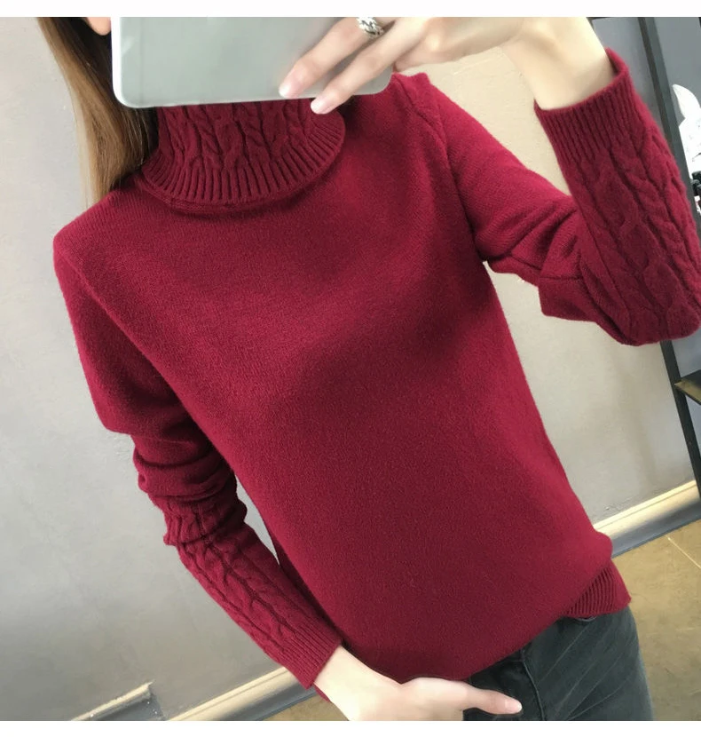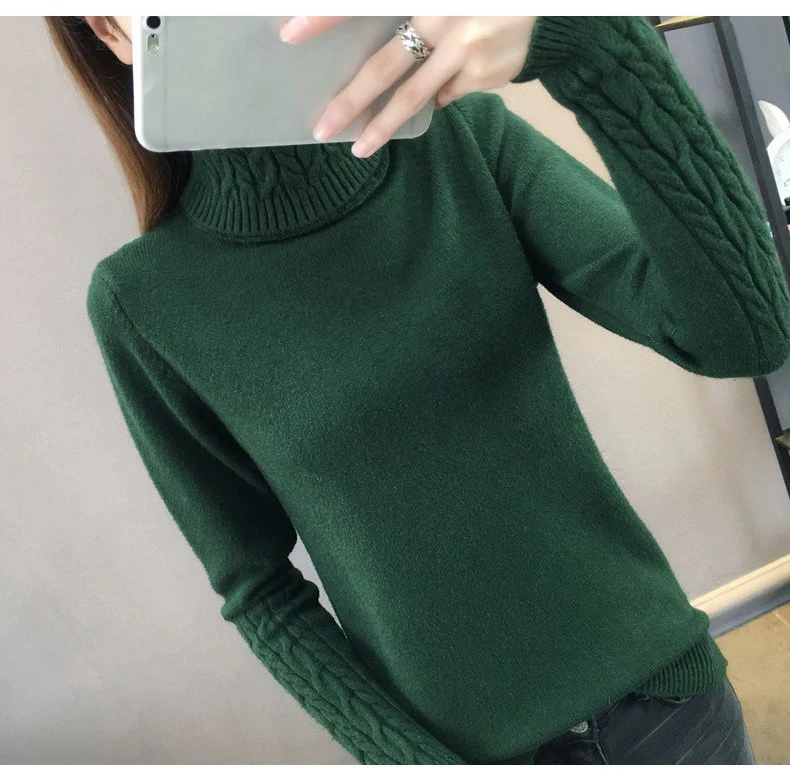 Зимний женский свитер с высоким воротником 2021, элегантный плотный Теплый Женский вязаный пуловер, повседневная трикотажная одежда, топы