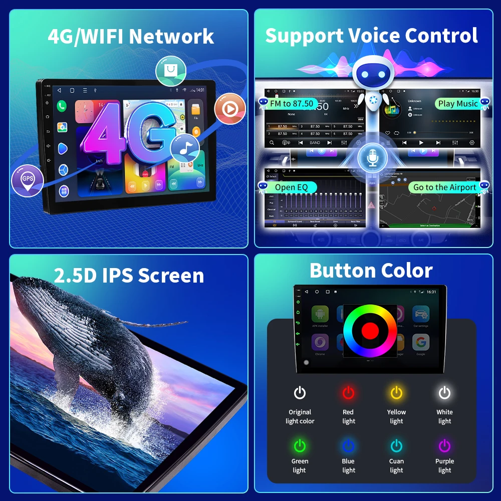 Автомагнитола 2 Din, Android 10, 4G, Wi-Fi, USB, BT, Carplay, DSP, ...