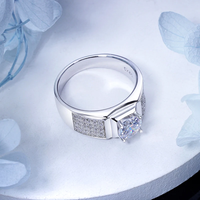 S925 серебро 1CT D Moissanite мужское кольцо прошло испытание алмаза высокое ювелирное изделие Свадебная вечеринка оптовая продажа