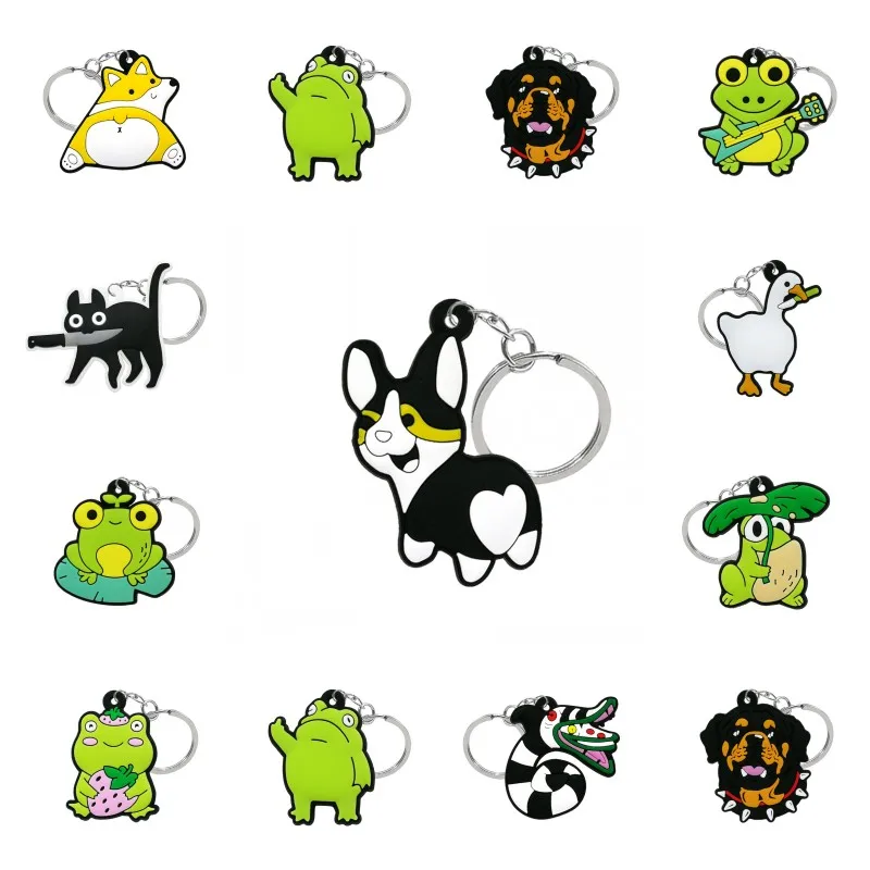 Лидер продаж, брелки для ключей из ПВХ, милые Мультяшные брелки для ключей с собакой лягушкой кошкой уткой, брелки с животным рисунком для мужчин и женщин, сумка для автомобиля, 1 шт.