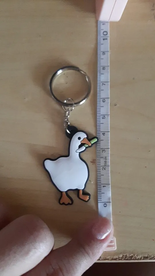 Смешной брелок из мягкой резины на короткой, в три звена, цепочке. Качество хорошее. Односторонний.