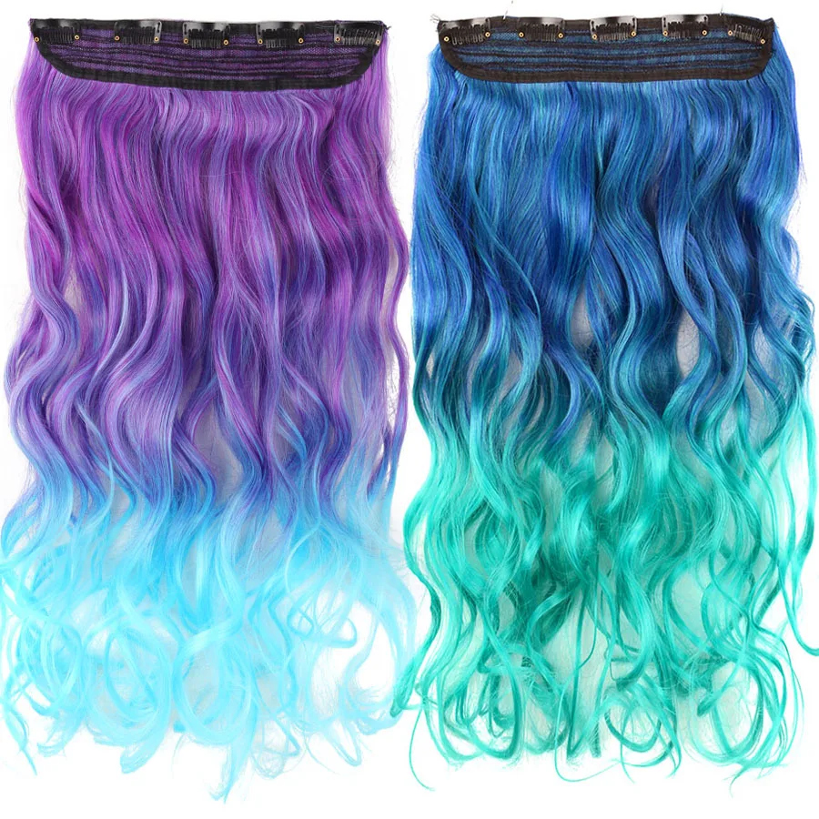 Синтетические накладные волосы на заколке 22 дюйма радужные шиньоны...