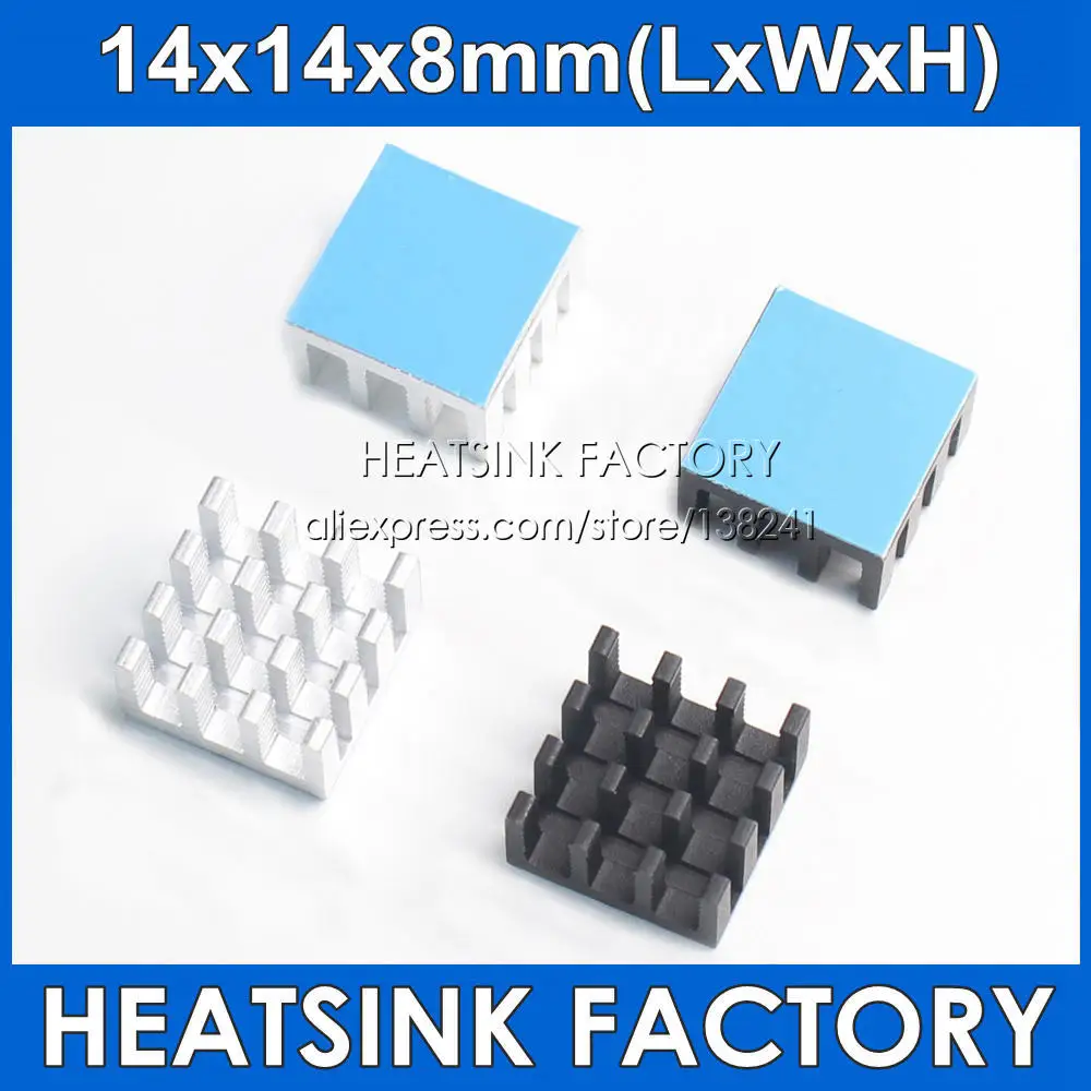 Серебристыйчерный анодированный радиатор 14x14x8 мм, радиатор радиатора с теплопроводящей подушкой