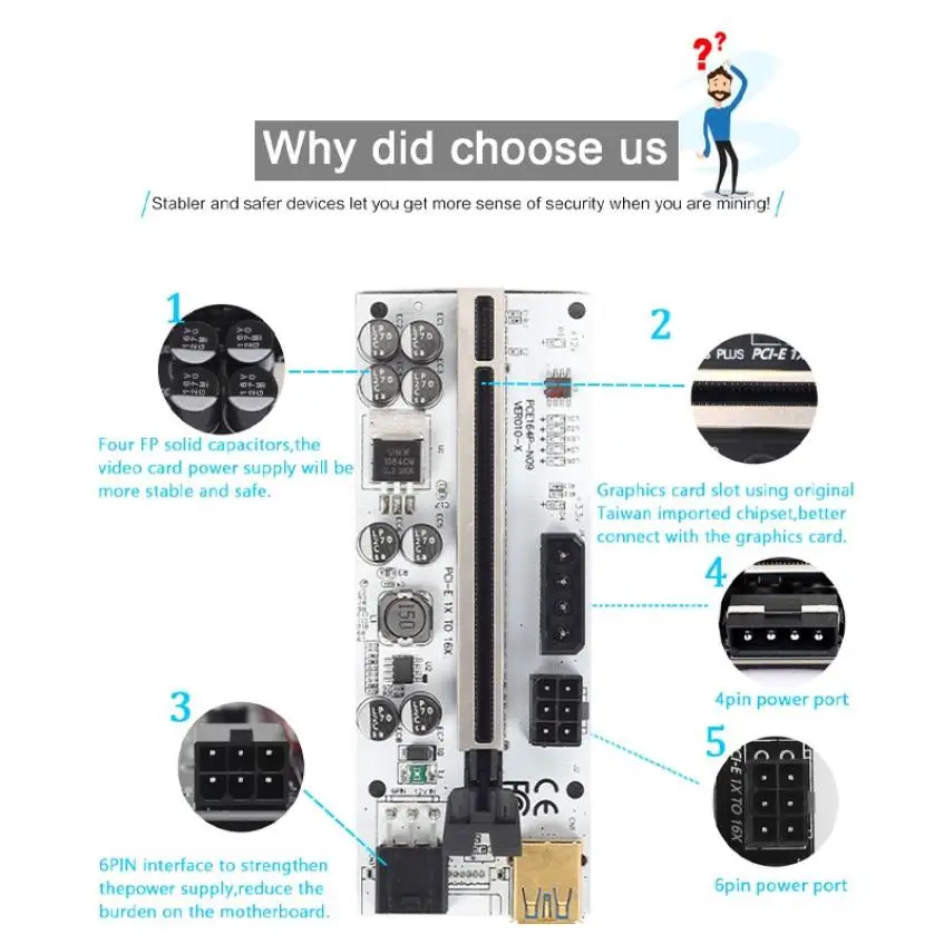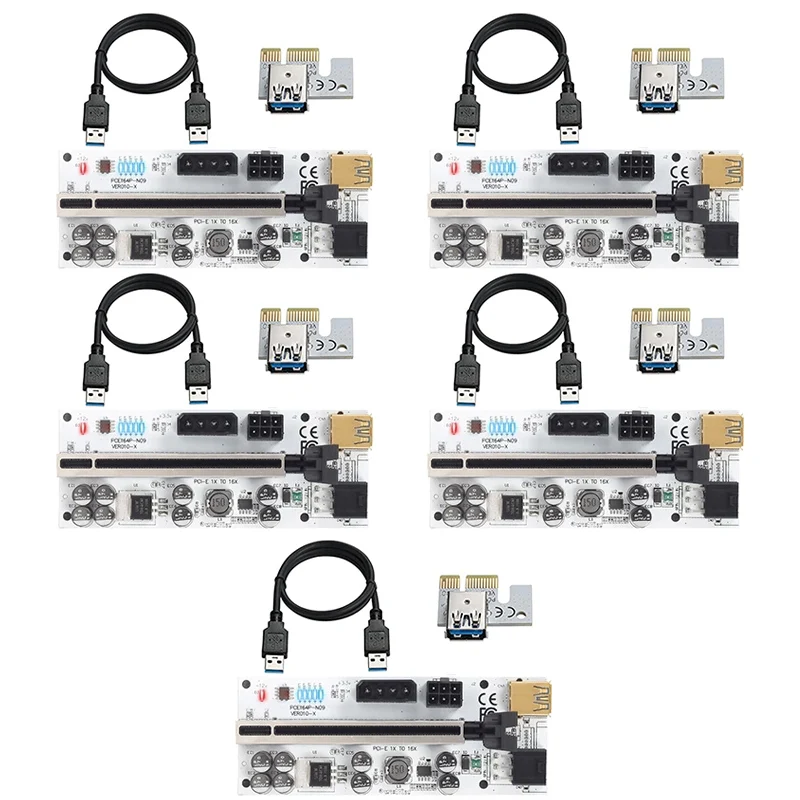 Райзер 010X PCI-E 1X 4x 8x 16x VER 010 Express, 5 шт., плата адаптера SATA, 15-контактный на 6-контактный кабель питания USB 3,0