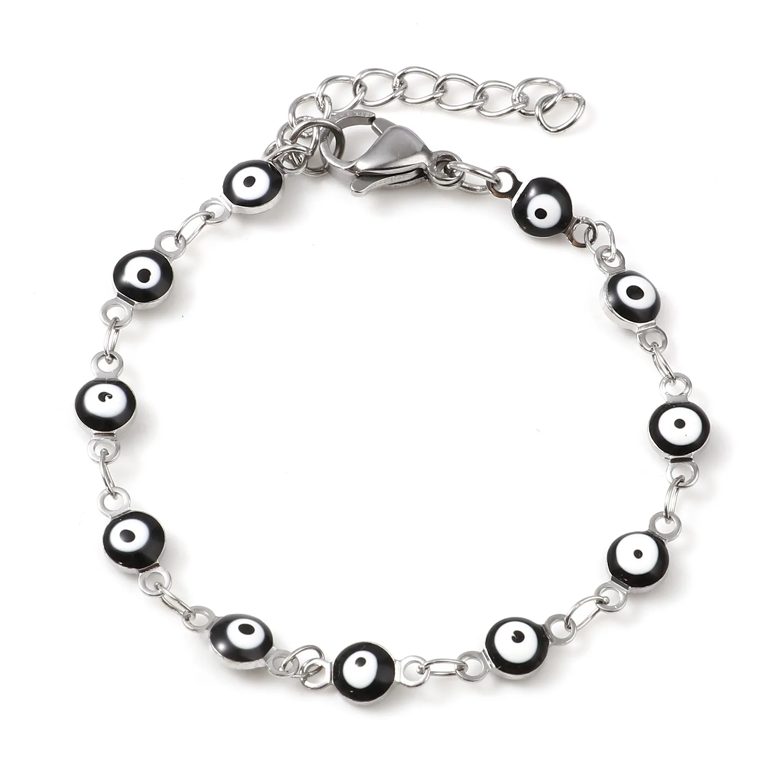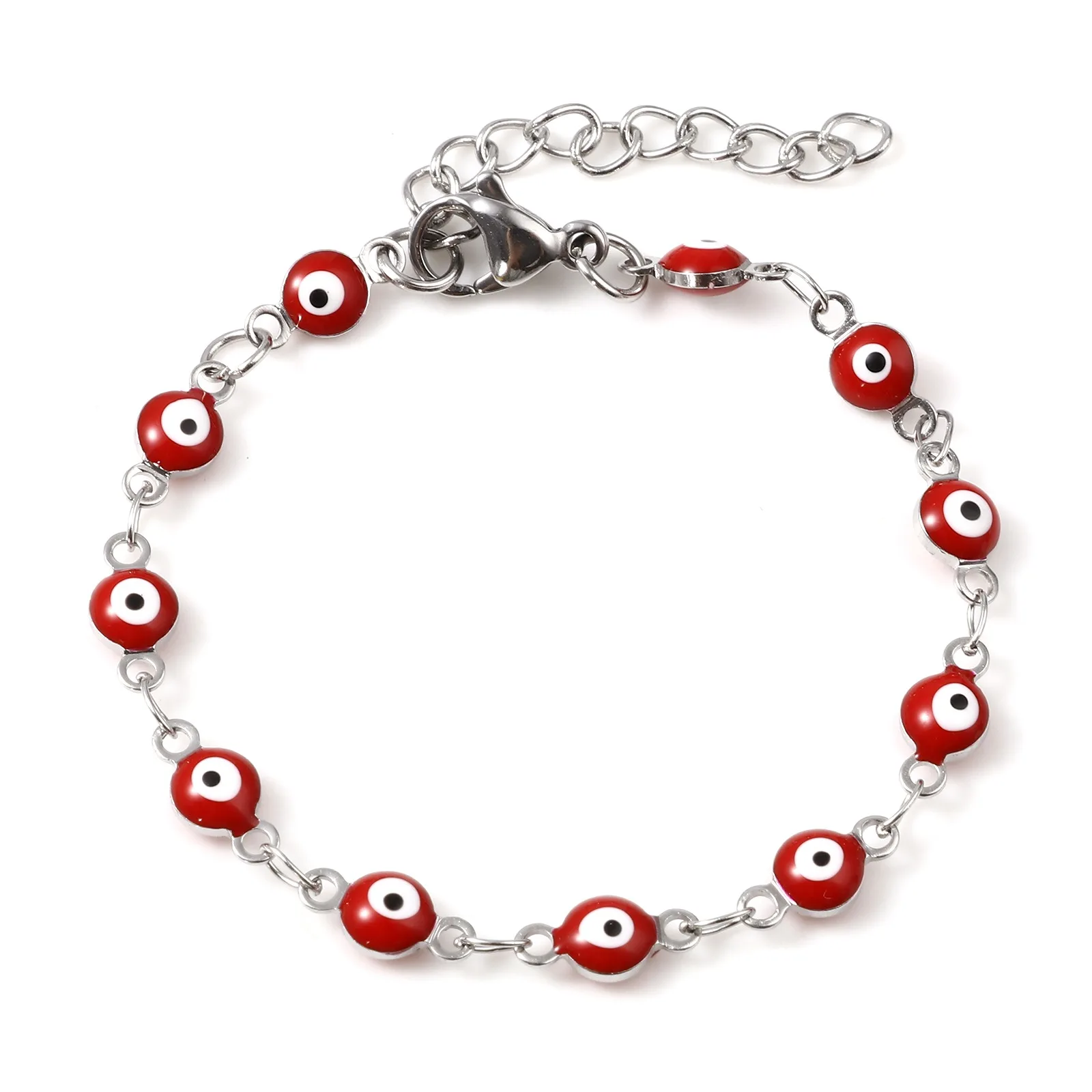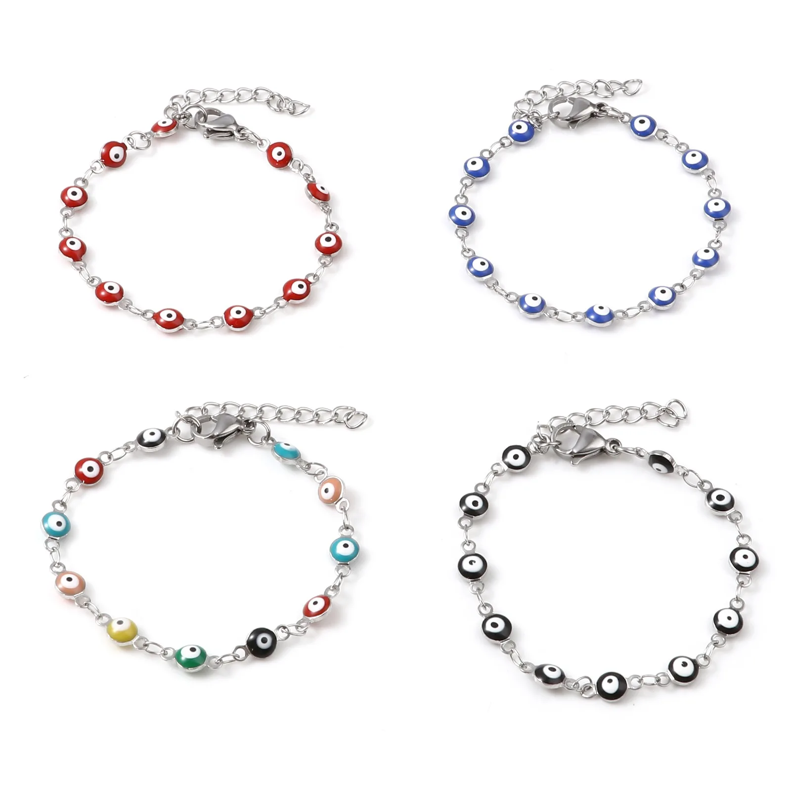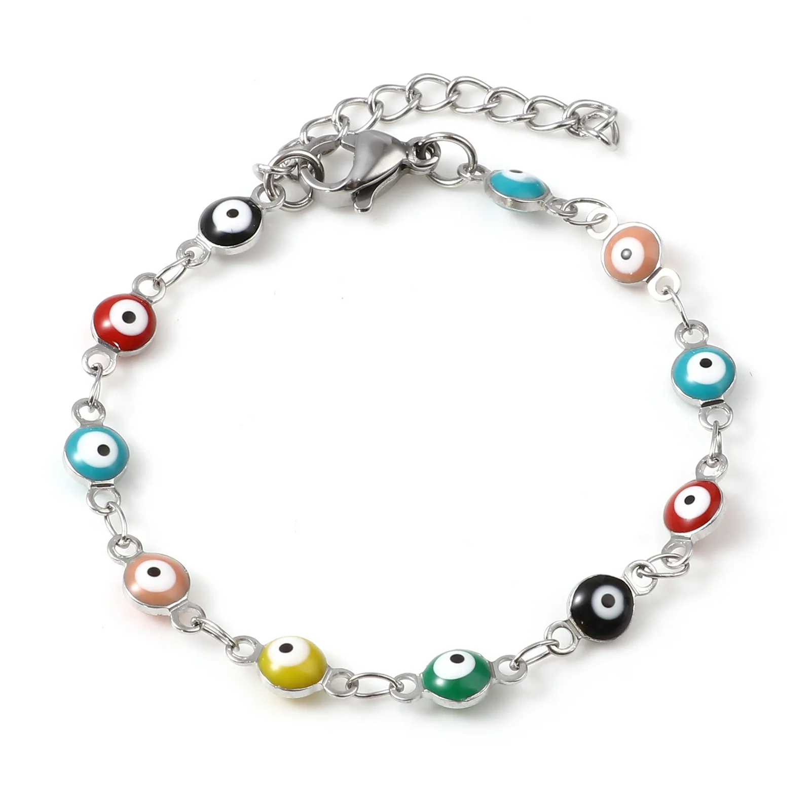 1 шт. религиозные браслеты из нержавеющей стали серебряный цвет многоцветный круглый эмалированный браслет от сглаза модные ювелирные изделия 13,5 см в длину