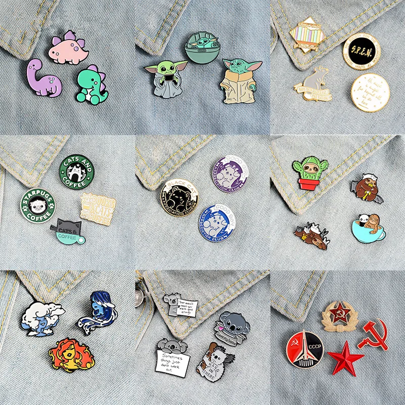 3 4 шт.компл. милые эмалированные булавки в виде животных, детей, Koala T-Rex, бриллиантовая собака, Ленивец, волшебный шар, ювелирные изделия, оптовая продажа, подарок