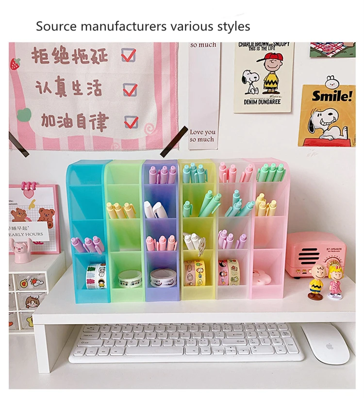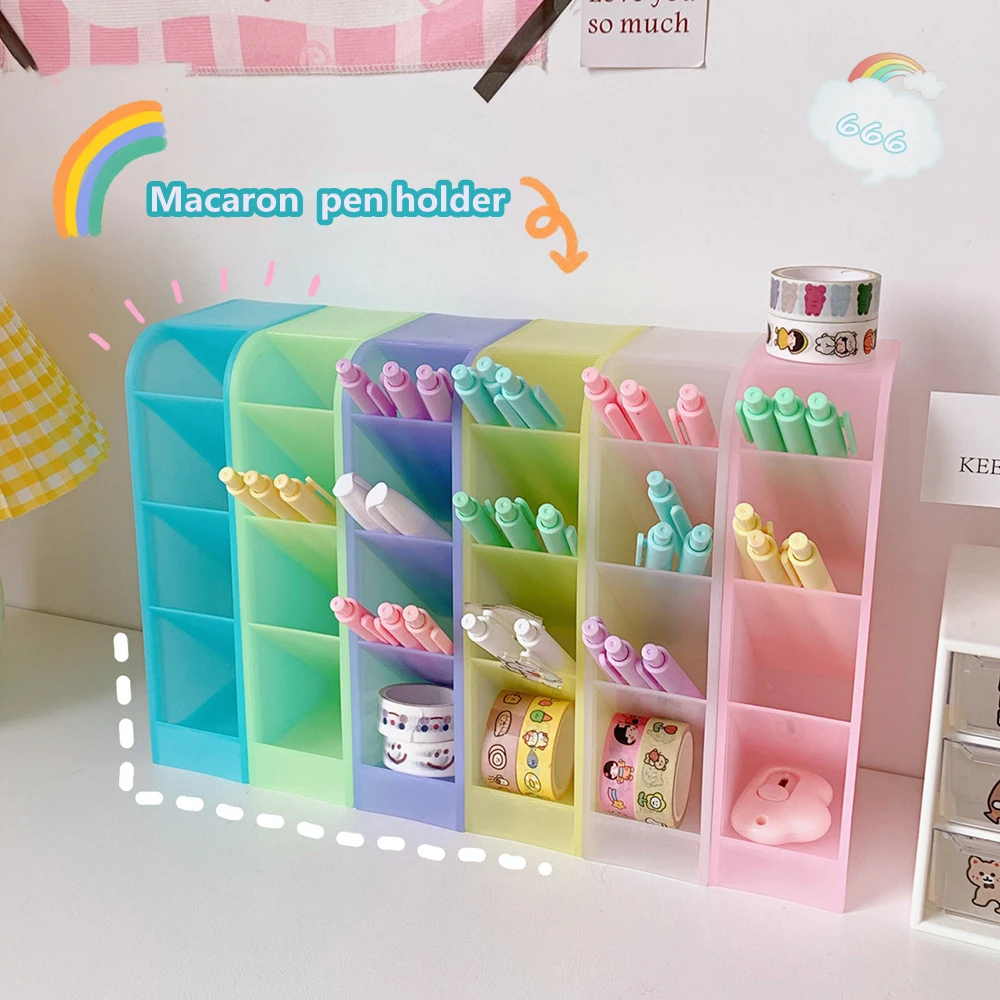 Kawaii Macaroon Color 4 Gird Настольный Органайзер держатель для ручки Настольный Чехол-карандаш коробка для хранения косметики корейский школьный офисный Канцтовары