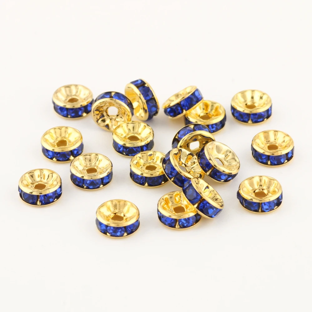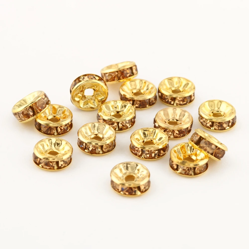 Круглые бусины-разделители с позолоченными стразами, круглые бусины...