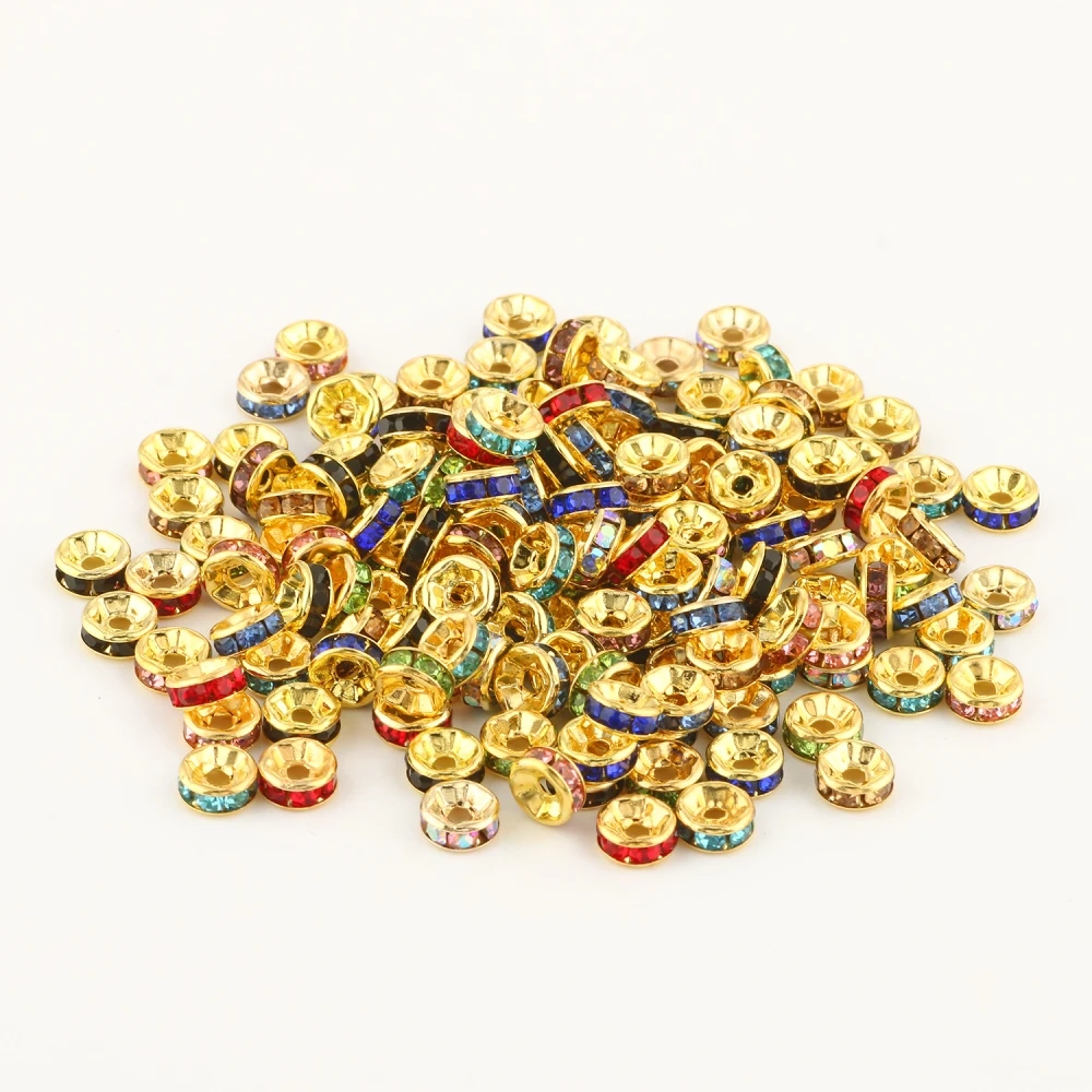 4 6 8 мм золотые разноцветные стразы округлые бусины с кристаллами ...