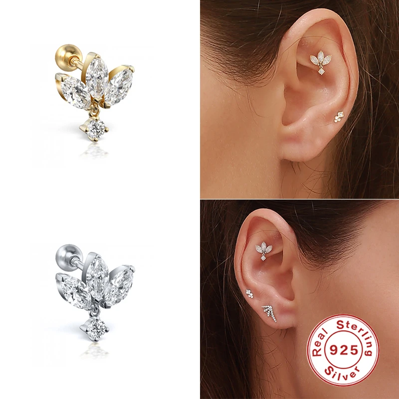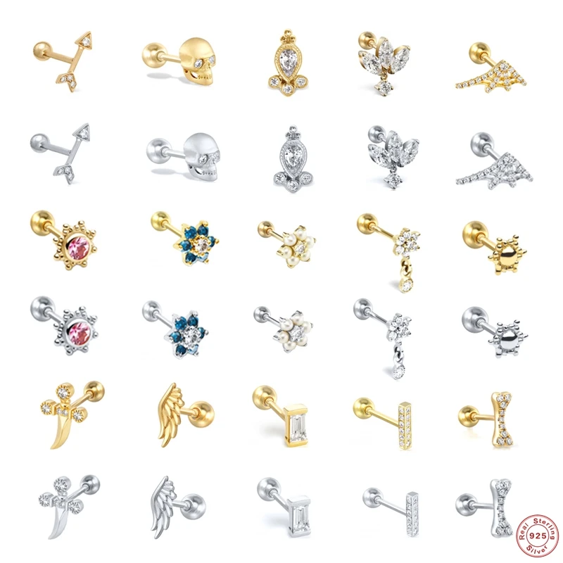 Серьги-гвоздики женские из серебра 925 пробы, роскошные украшения для пирсинга со стрелкой, черепом, кинжалом, крыльями, клипсой