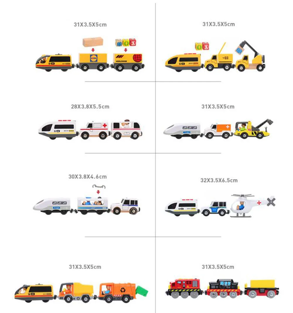 Электрический поезд с пультом дистанционного управления, игрушечный набор, соединенный с деревянным железнодорожным треком, интересный подарок для детей