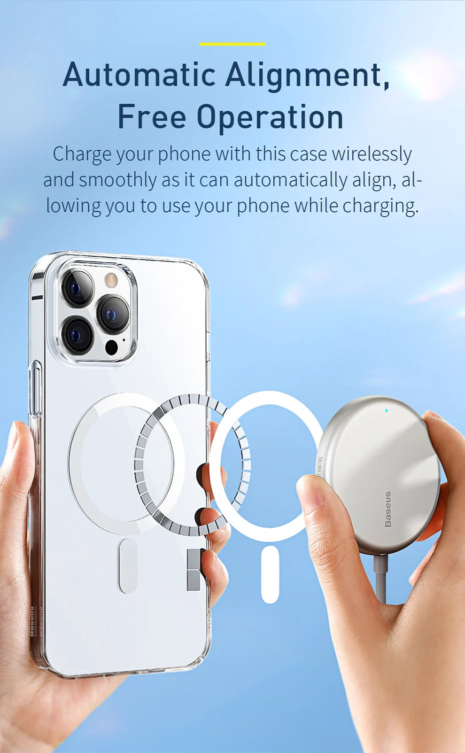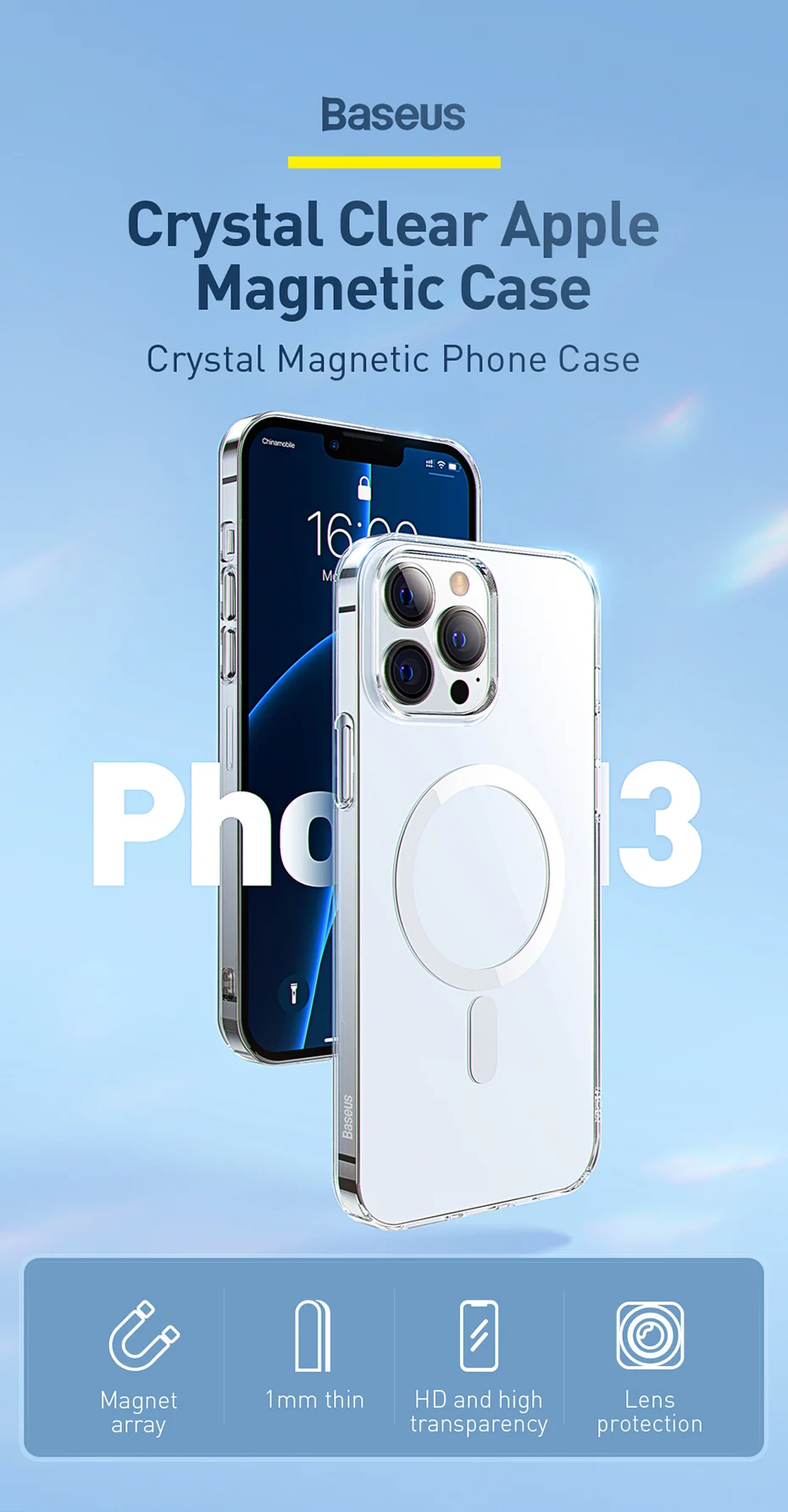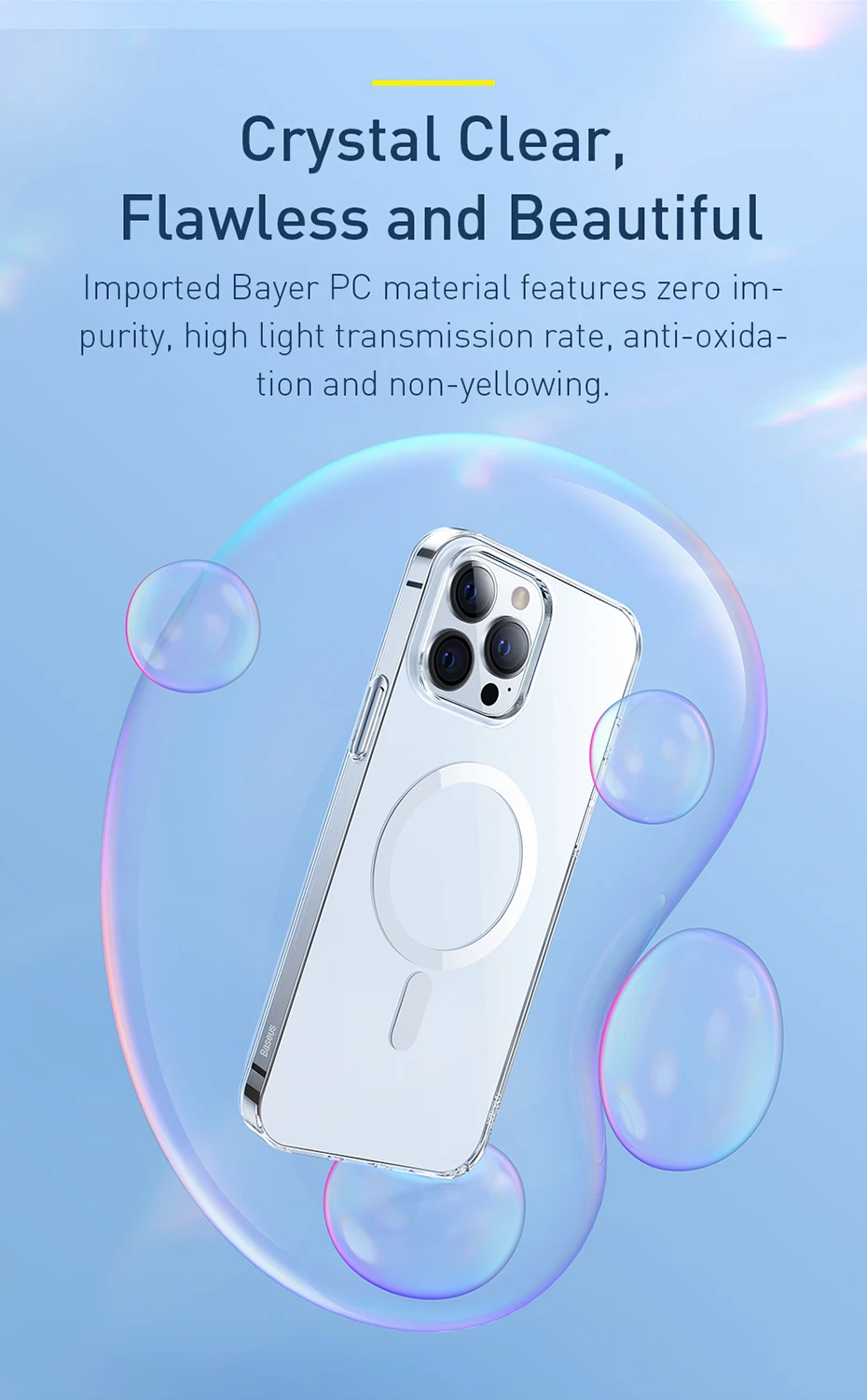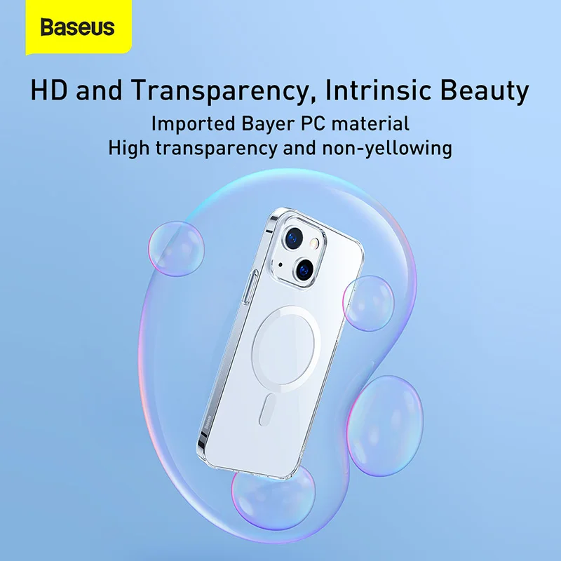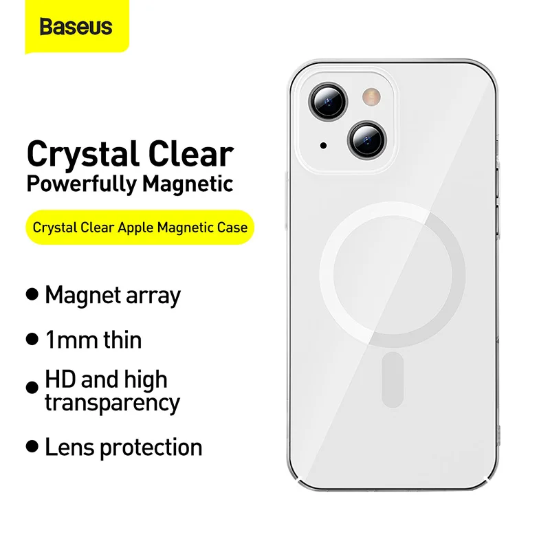 Магнитный чехол Baseus для iPhone 13 Pro Max 2021, поддержка беспроводной зарядки, задняя крышка, прозрачный защитный Магнитный чехол