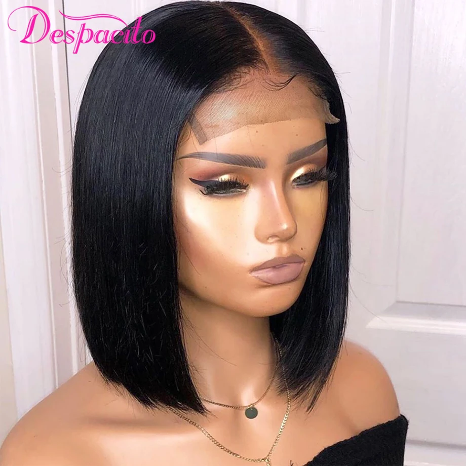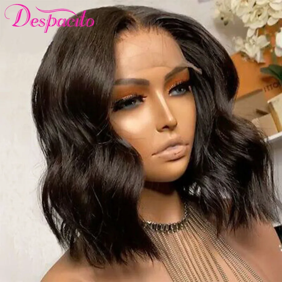 Бразильские прямые короткие парики с кружевом для черных женщин, волнистые парики с кружевом, парики с Т-образной частью, парики из 100% человеческих волос средней длины коричневого цвета