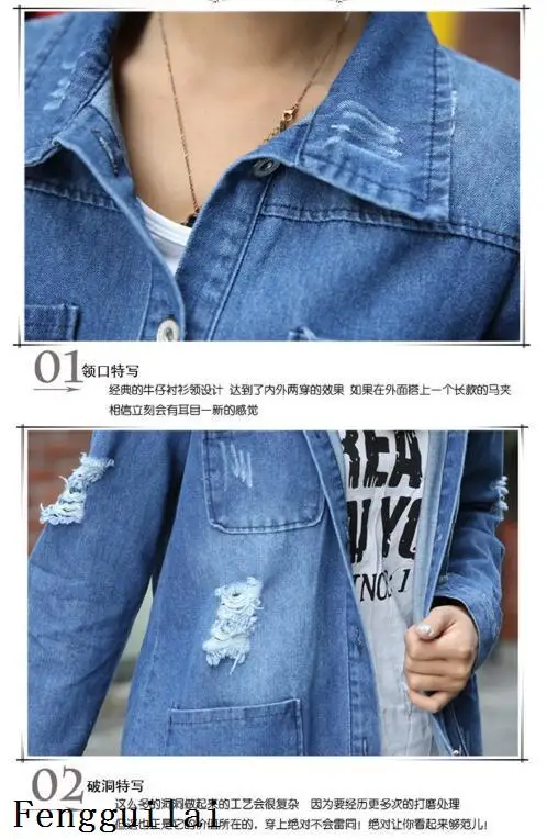 Осенние джинсовые куртки с отверстиями, женская модель, облегающие джинсы, верхняя одежда, топы, Кардиган с длинным рукавом, ковбойская Женская куртка средней длины