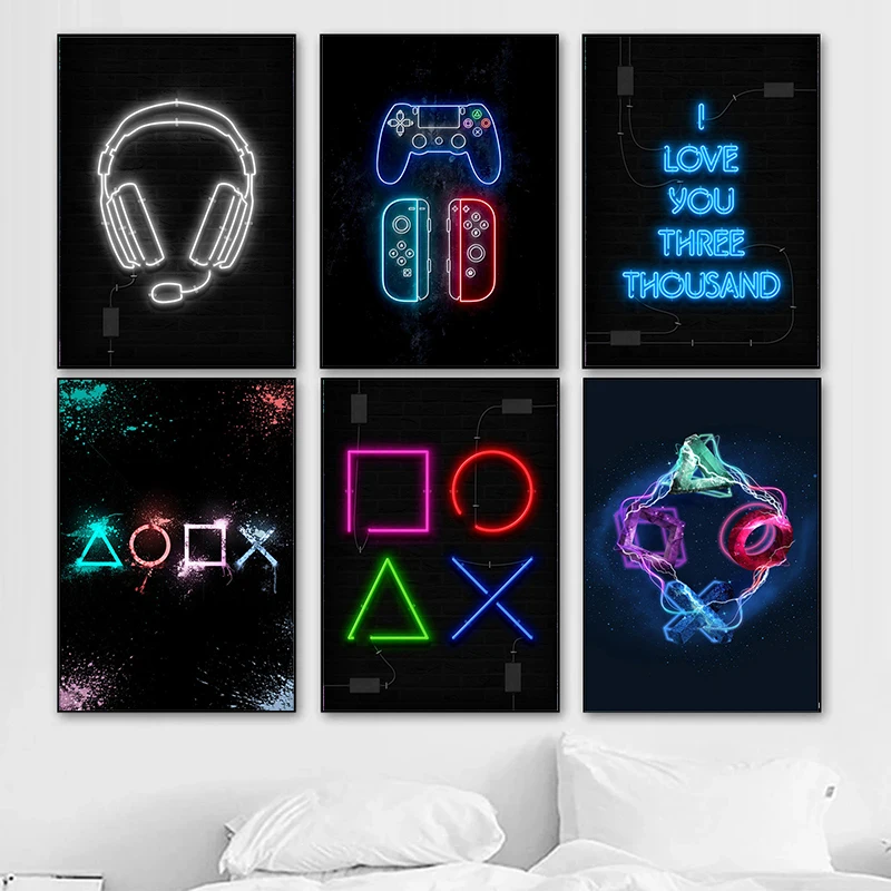 Картина на холсте игровой приставки, Постер и печать игровой комнаты, настенные картины на холсте для игровой комнаты, украшение для дома icon star icon star icon star icon star icon star