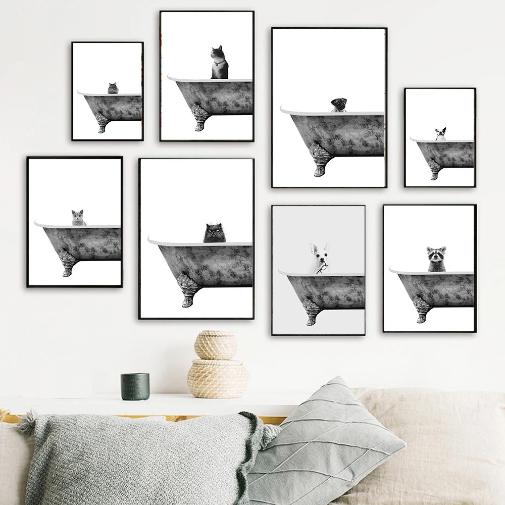 Счастливая фотография, скандинавский постер с принтом животных, примите ванну для гостиной, домашний декор, Настенная картина на холсте, картина без рамки
