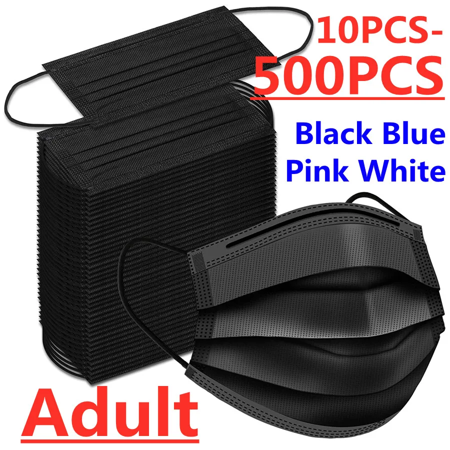 10-500 шт., одноразовые черные маски для лица, 3 слоя