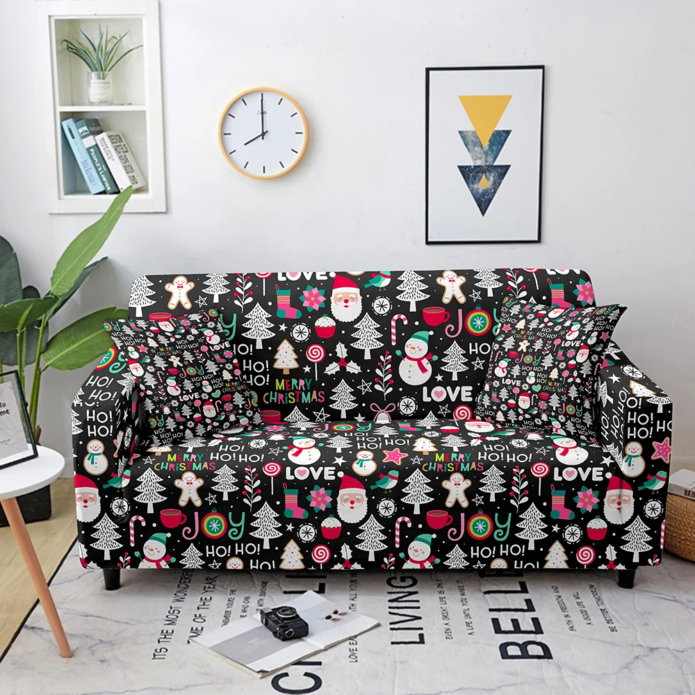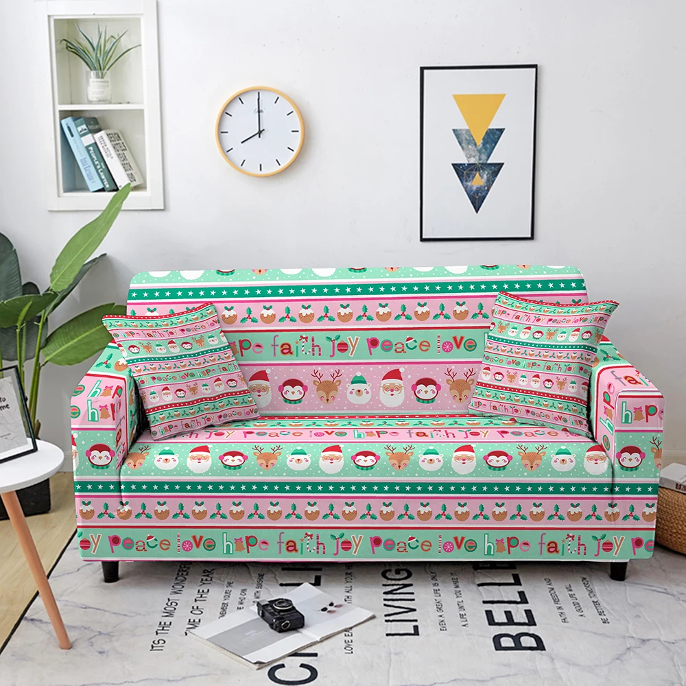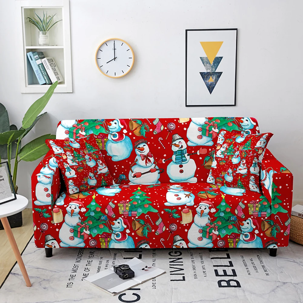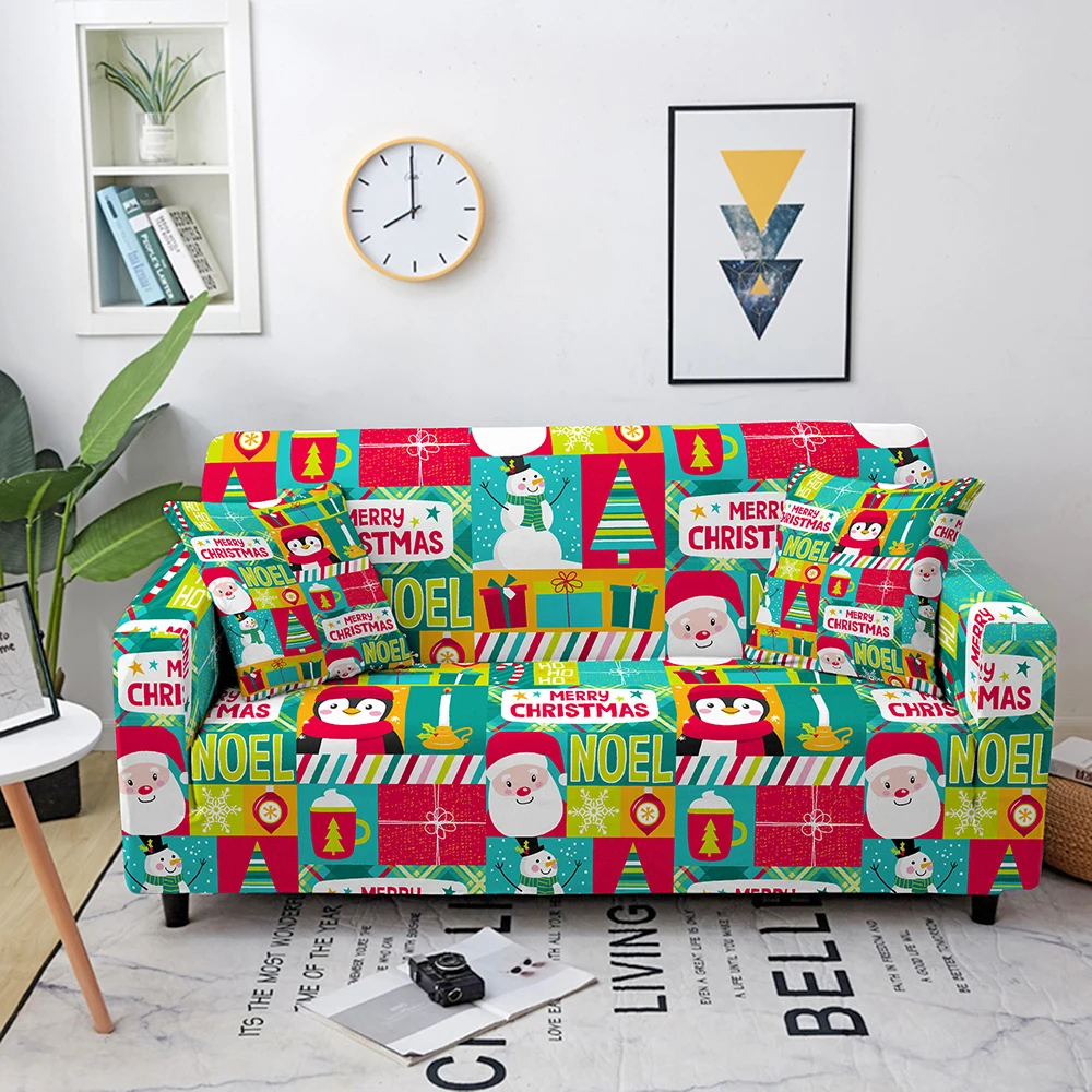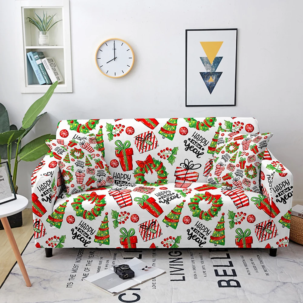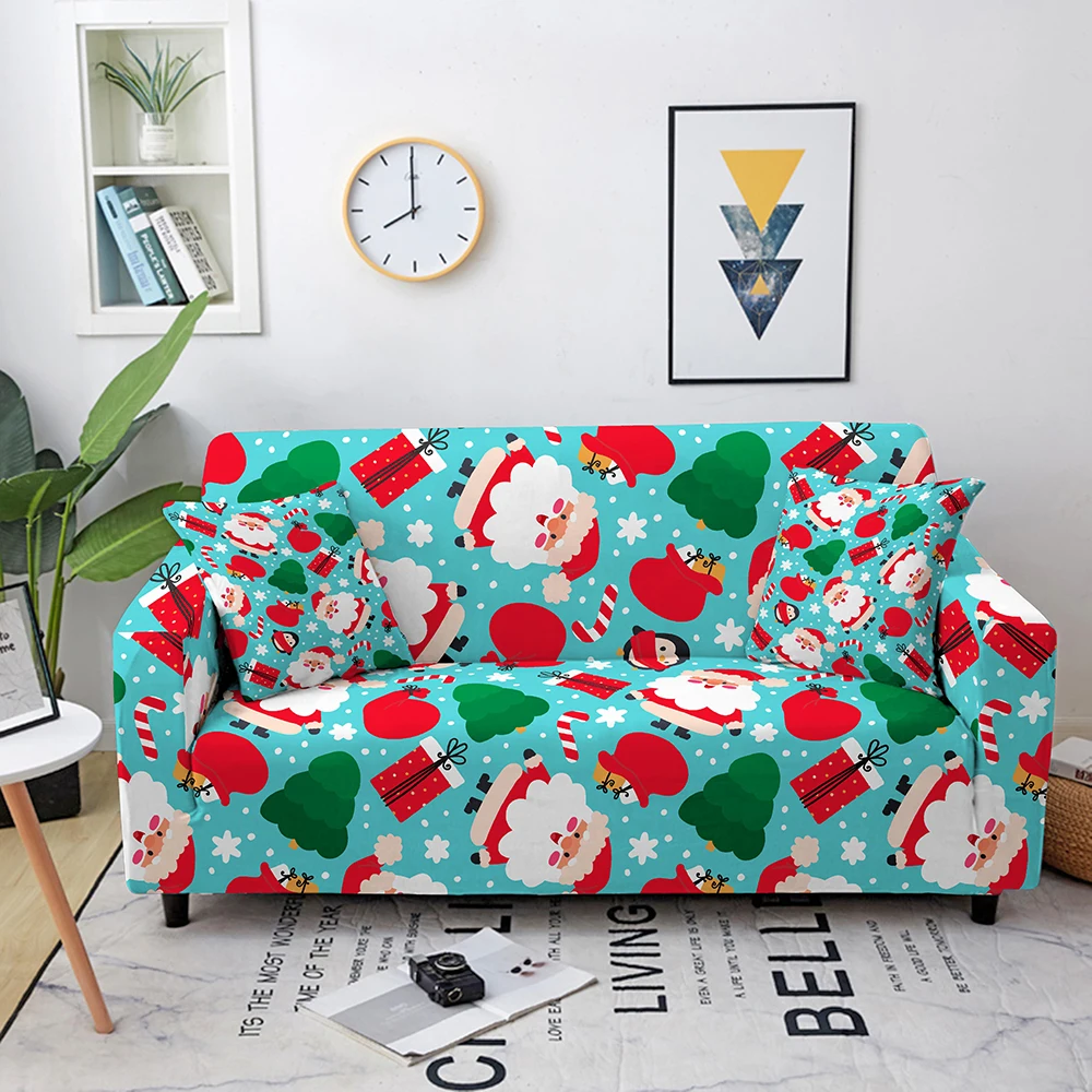 Рождественский чехол для дивана, эластичный чехол для дивана Санта-Клауса для гостиной, чехол для углового дивана, чехол для секционного дивана 1234-местного
