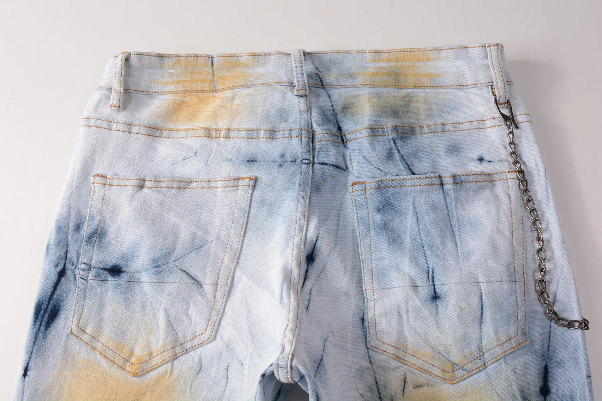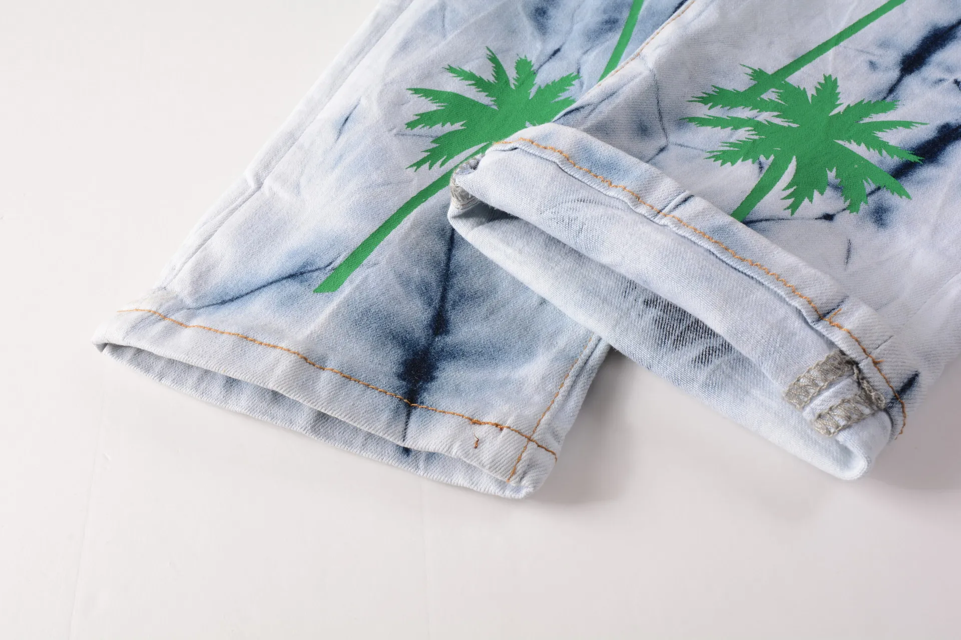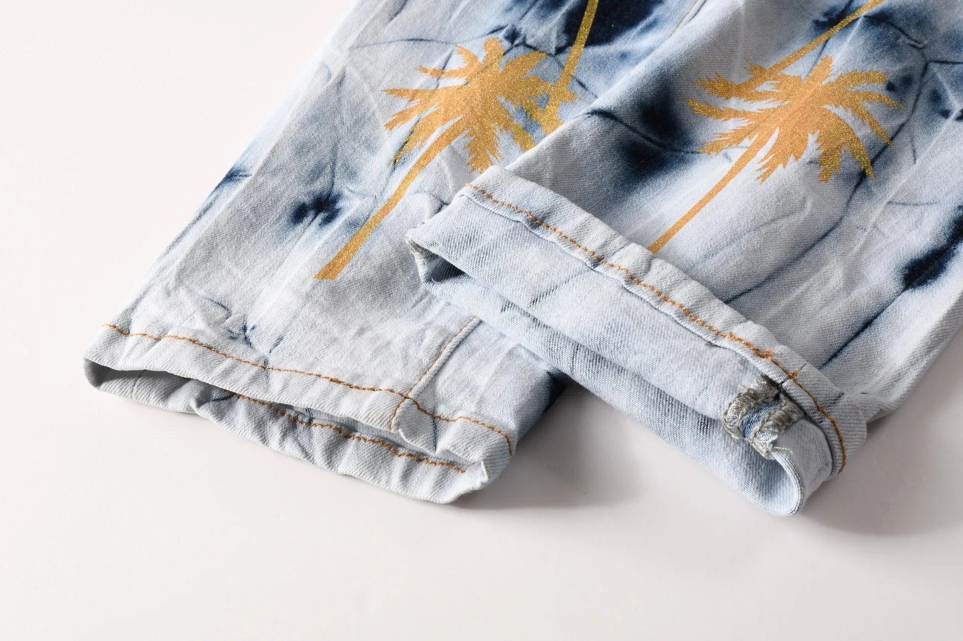 Светильник роскошные мужские джинсовые брюки, узкие Стрейчевые грязные джинсы, рваные джинсы с кокосовым деревом, уличная мода