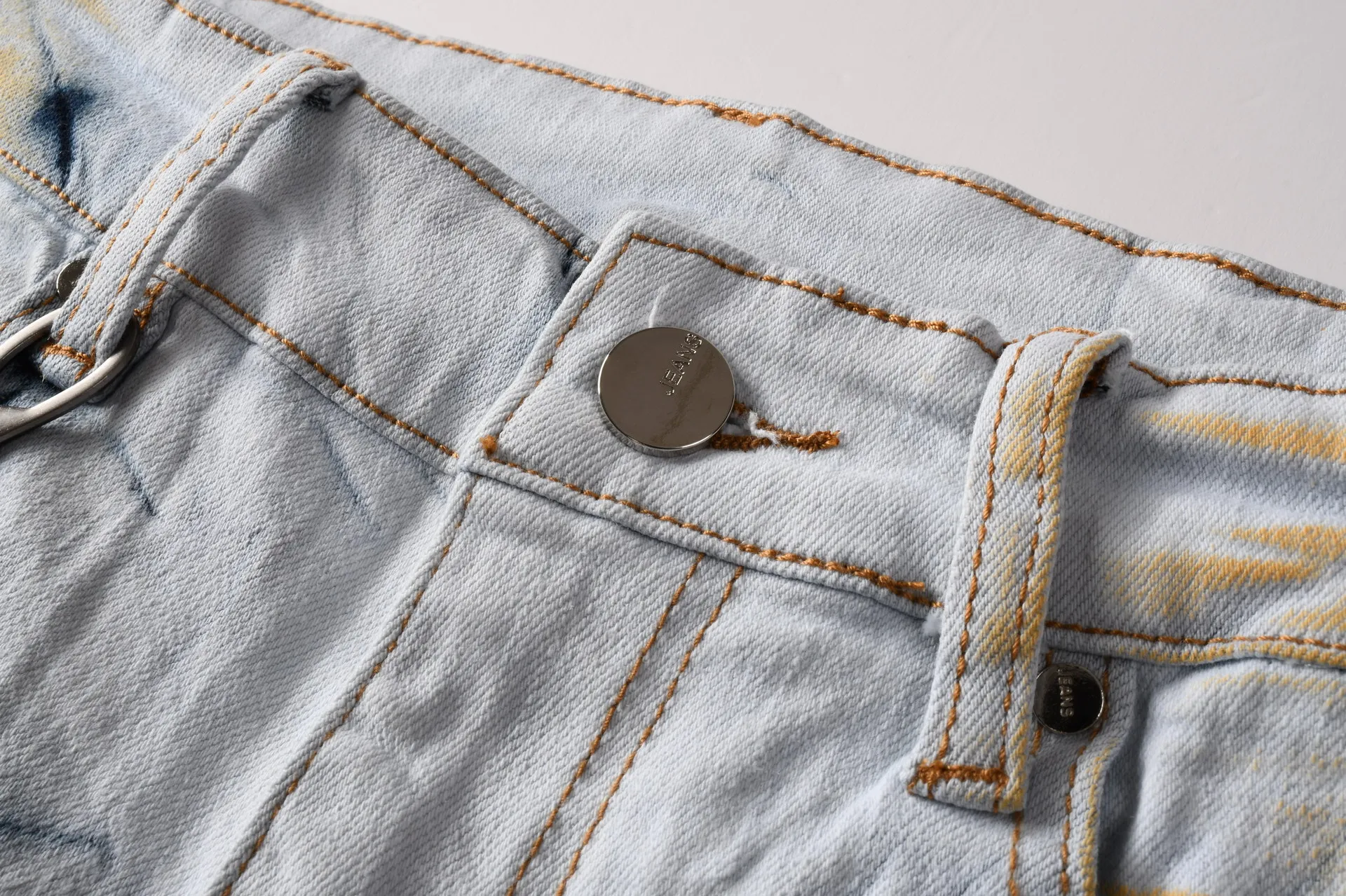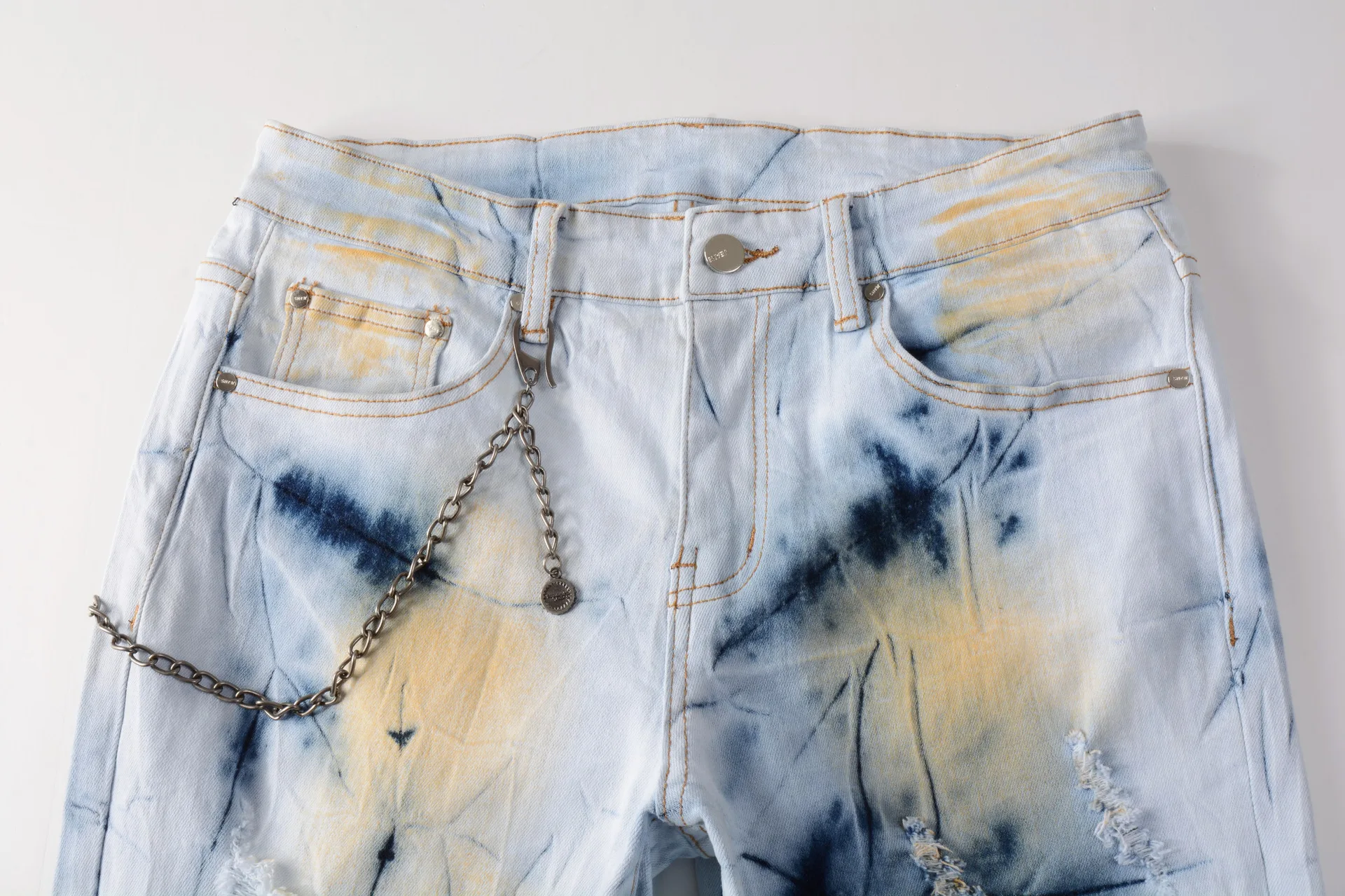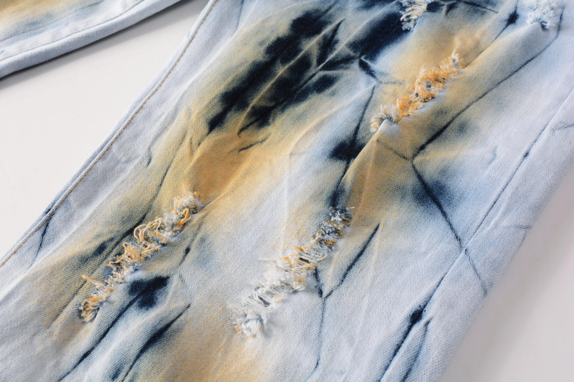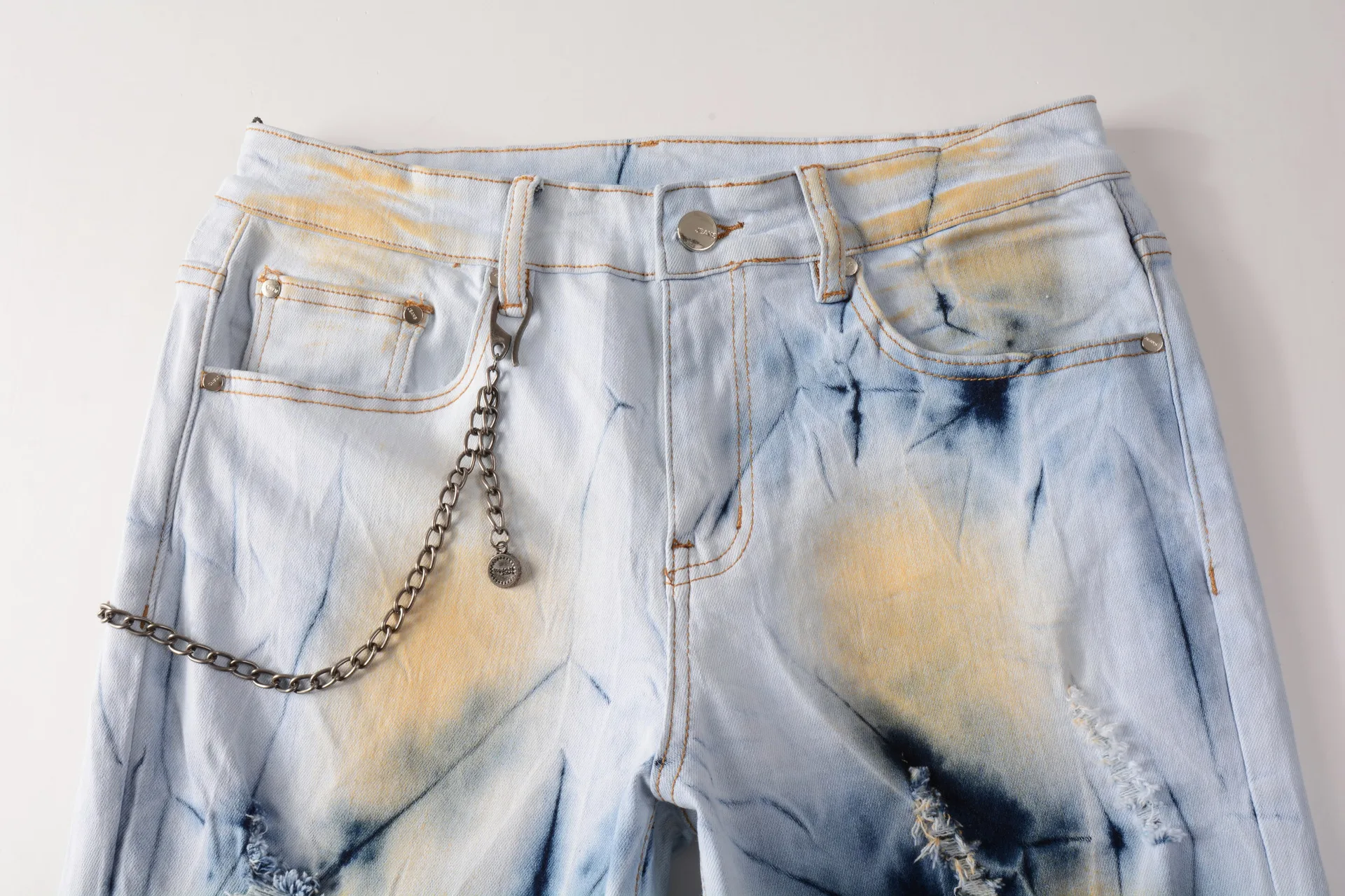 Светильник роскошные мужские джинсовые брюки, узкие Стрейчевые грязные джинсы, рваные джинсы с кокосовым деревом, уличная мода