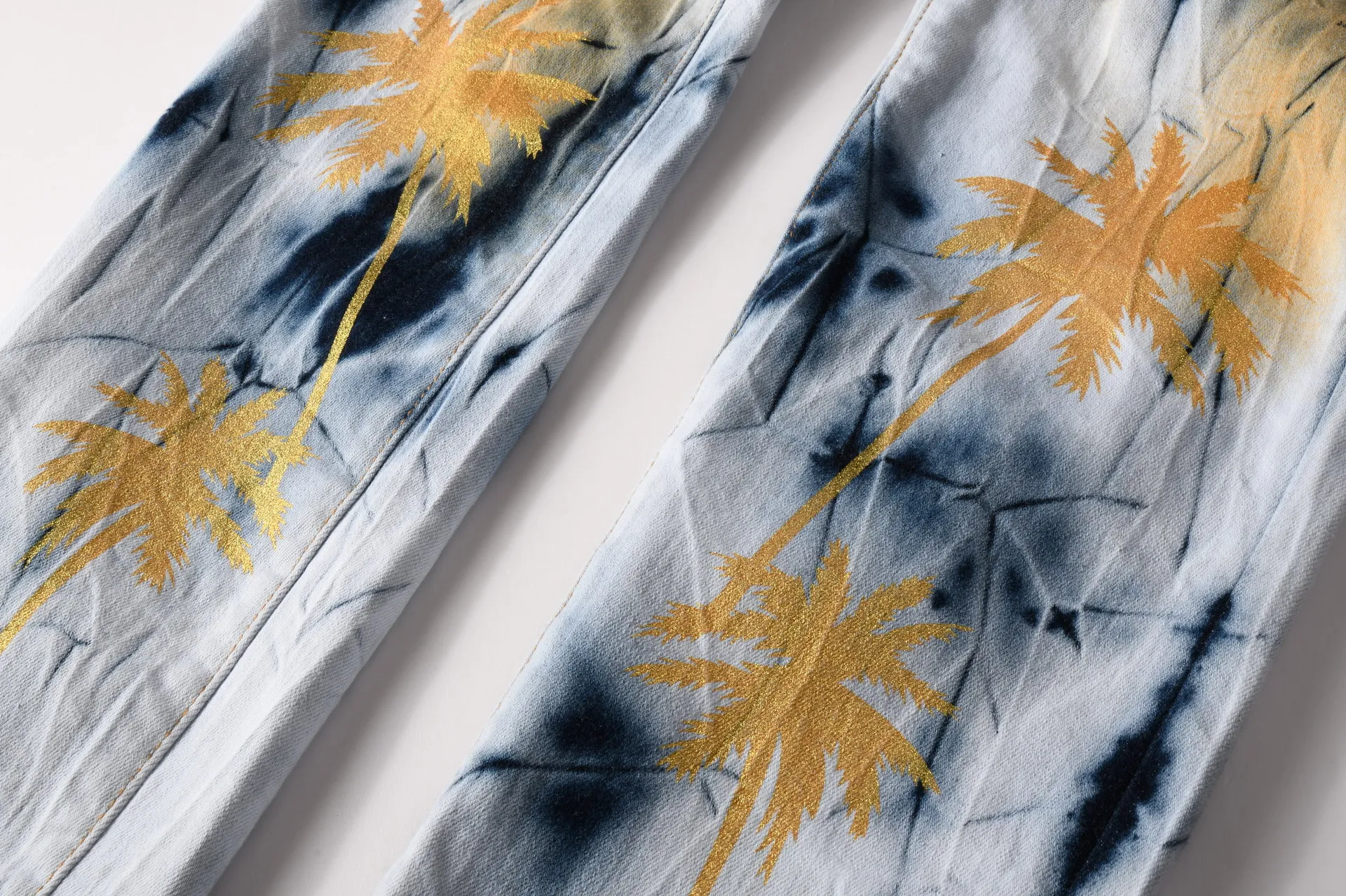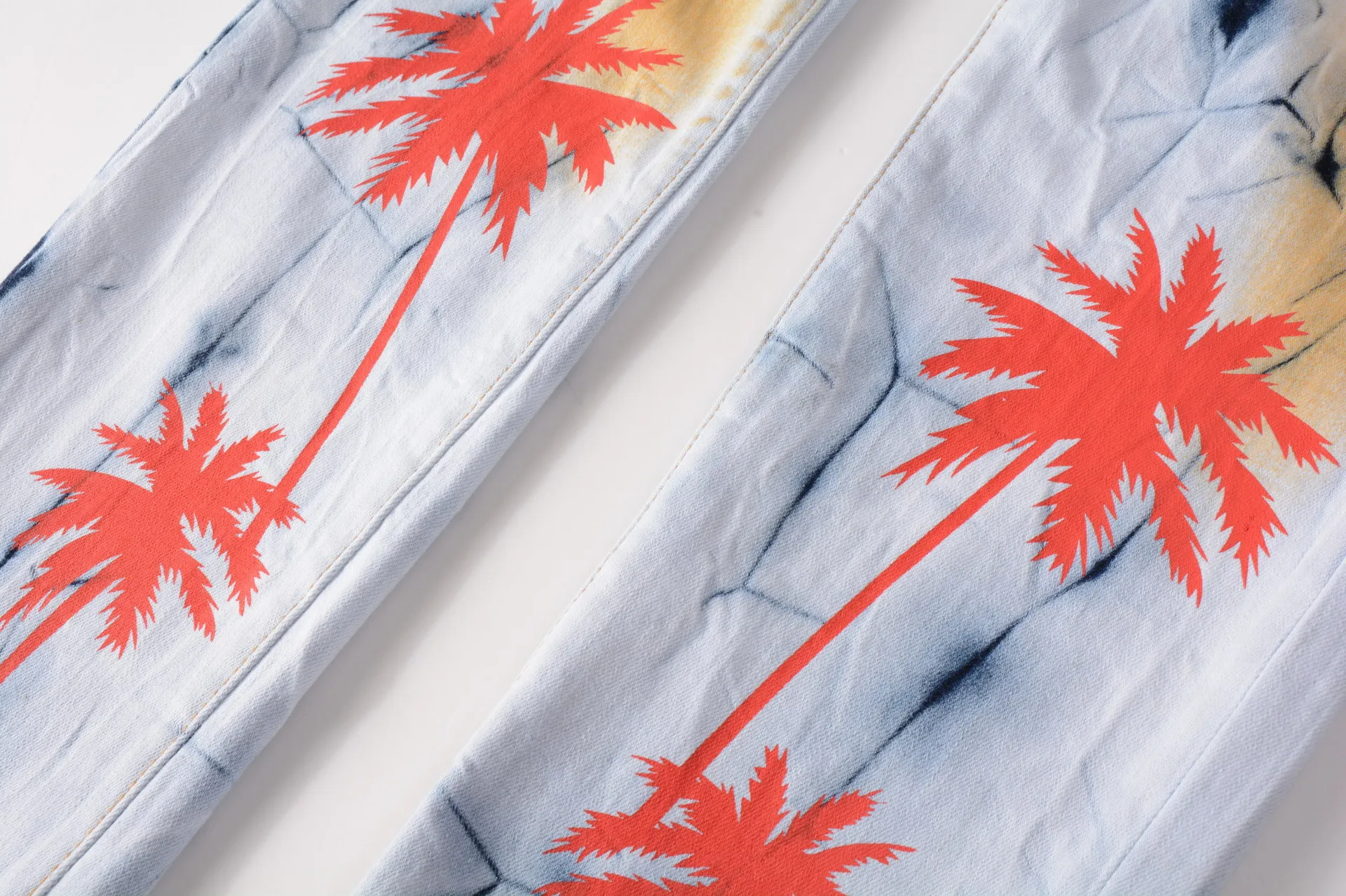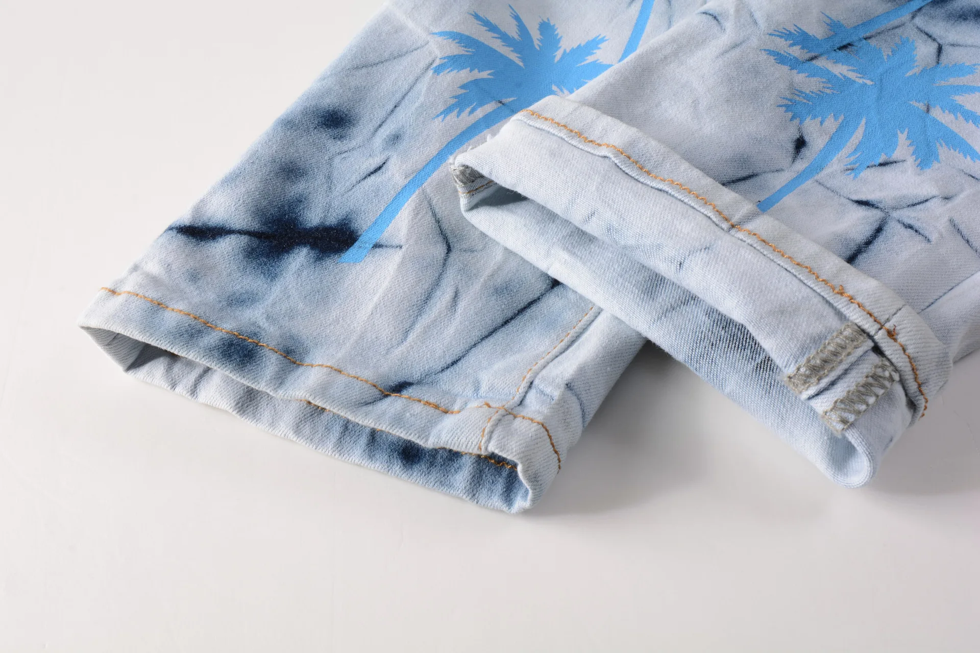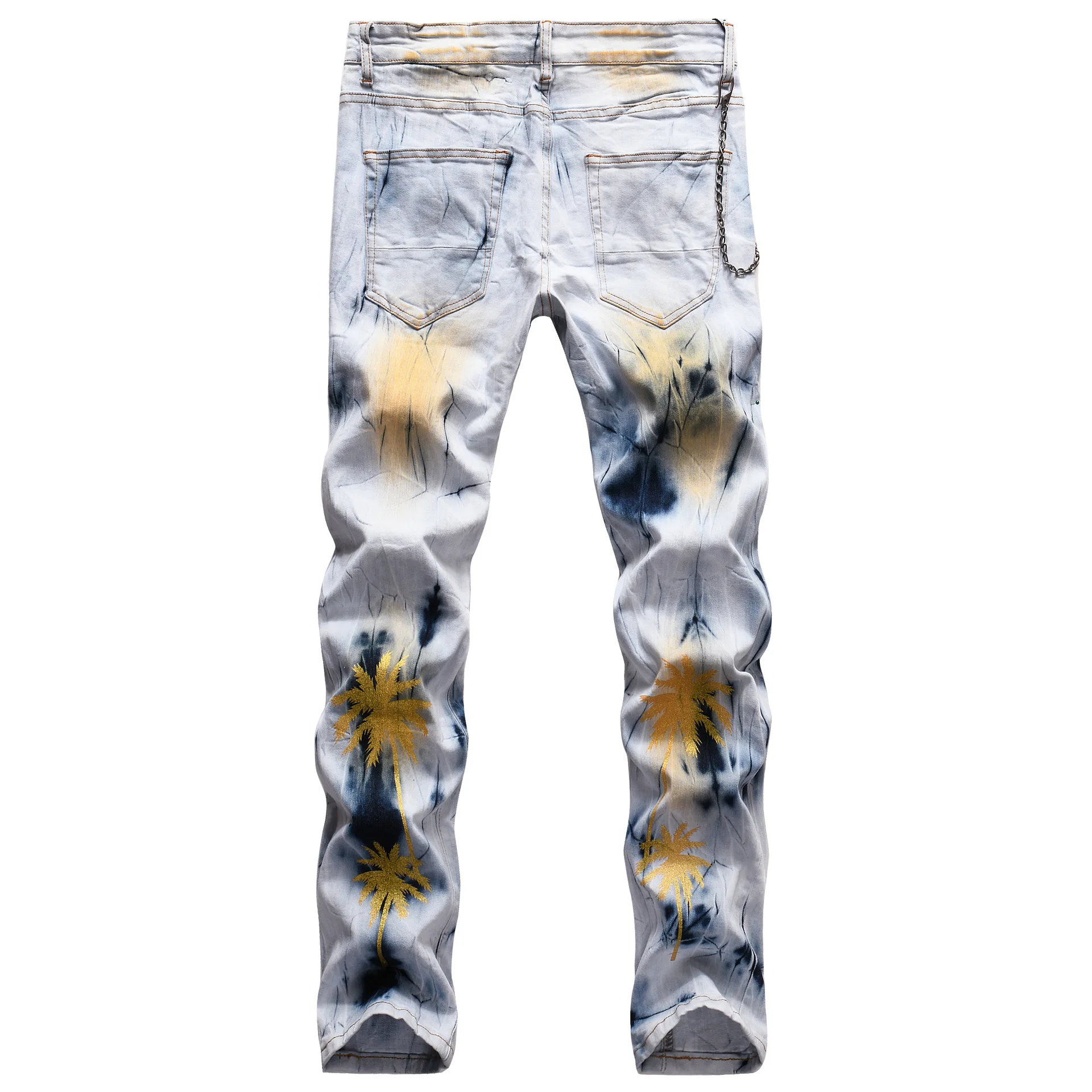 Джинсы мужские с принтом кокосовых деревьев, узкие Стрейчевые прямы...