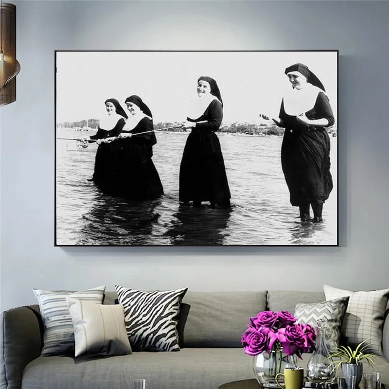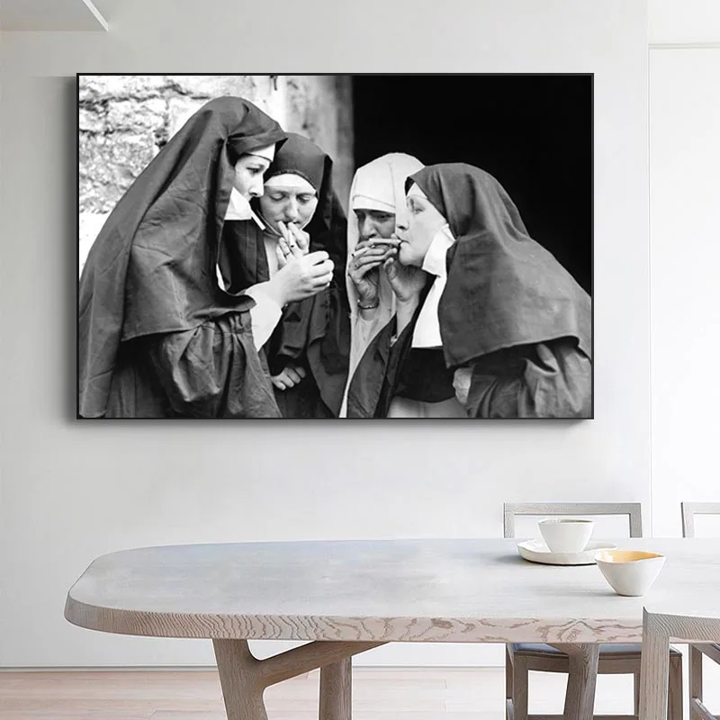Черно-белый постер печать курительной монахини Ретро фотографии сигареты забавная настенная Картина на холсте для гостиной домашний декор картины