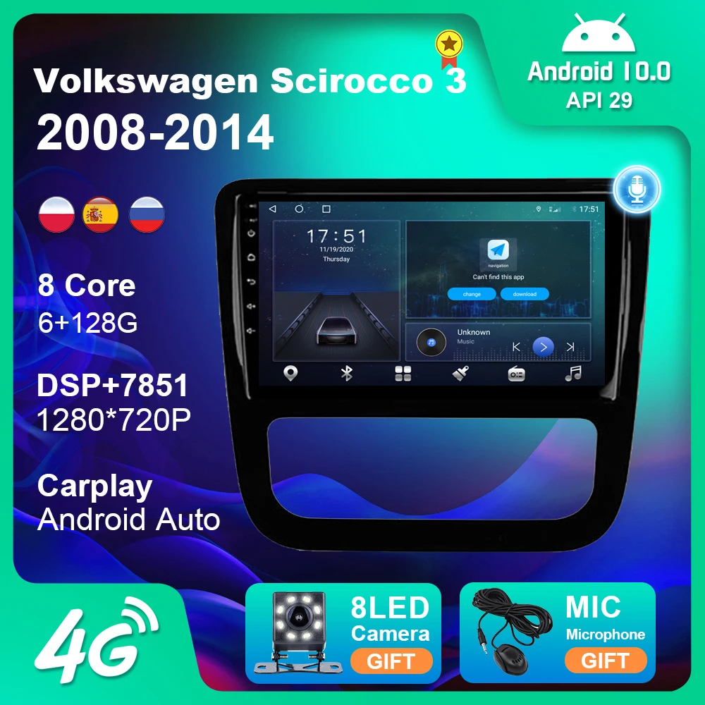 Автомобильное радио, 4G, Wi-Fi, Android 10,0, для Volkswagen Scirocco 3 2008-2014, IPS, GPS-навигатор, видео, DSP, Carplay, No 2 din, DVD