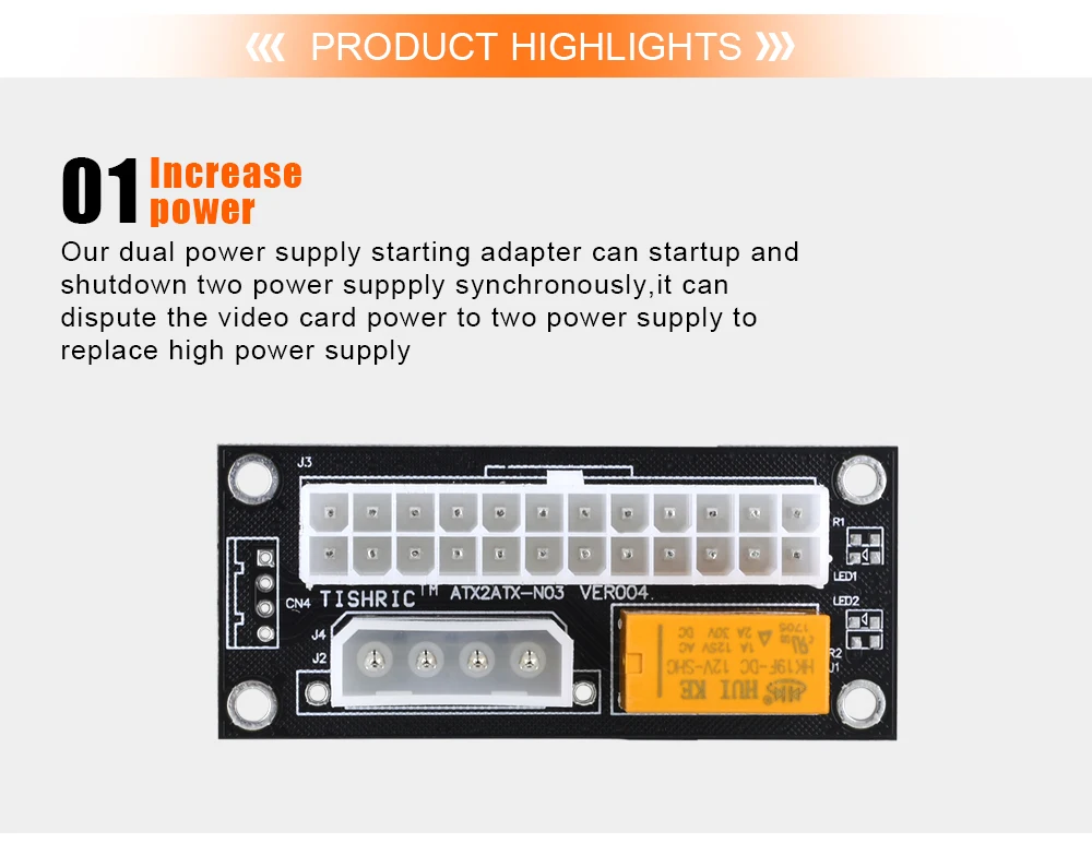 Адаптер TISHRIC Add2psu с двойным блоком питания, 24 контакта, ATX ...