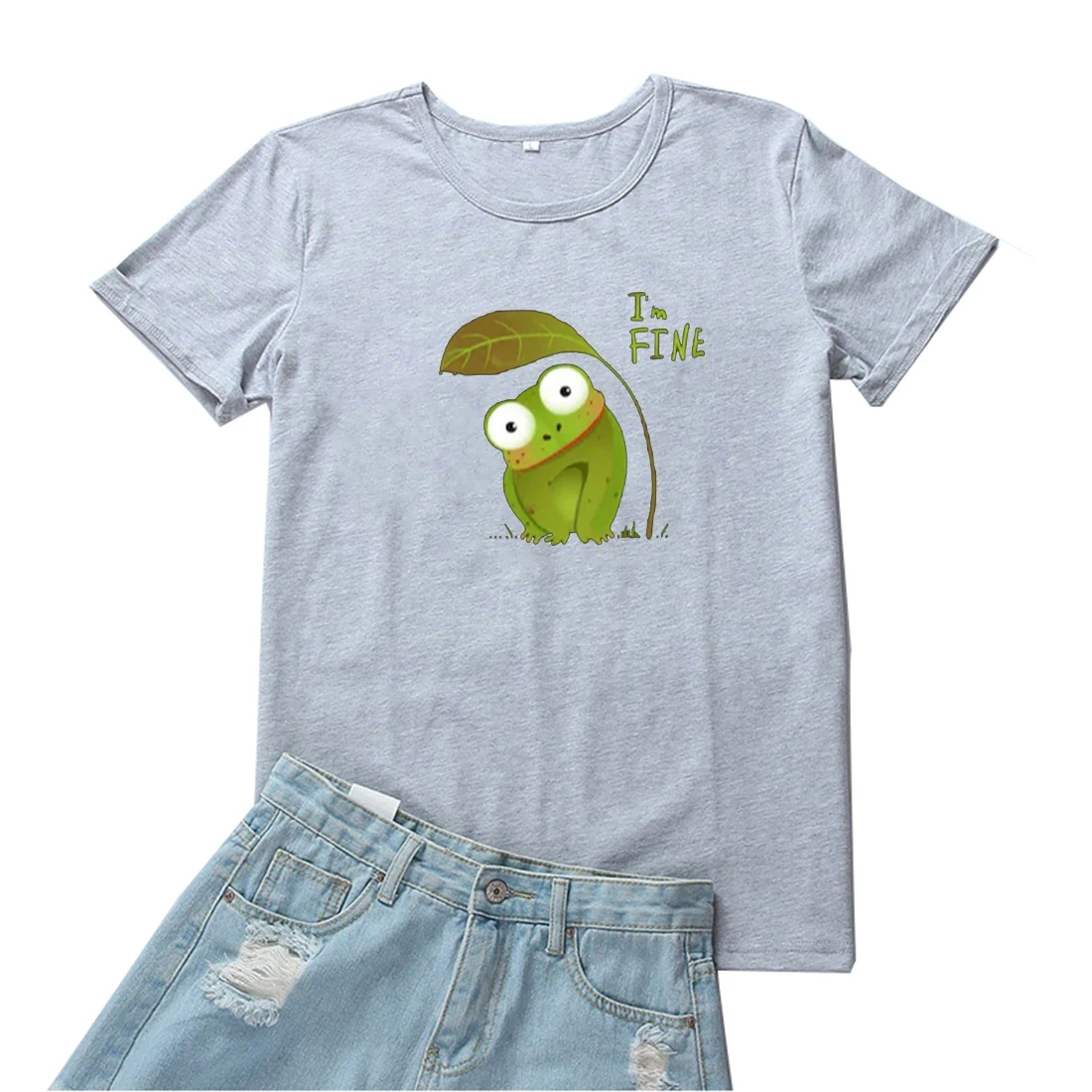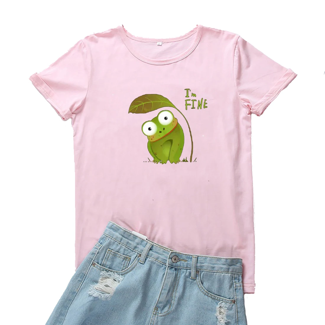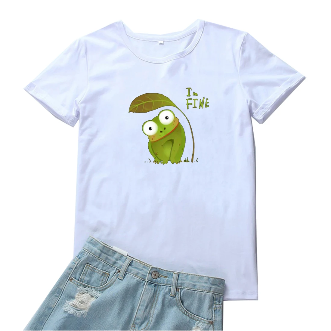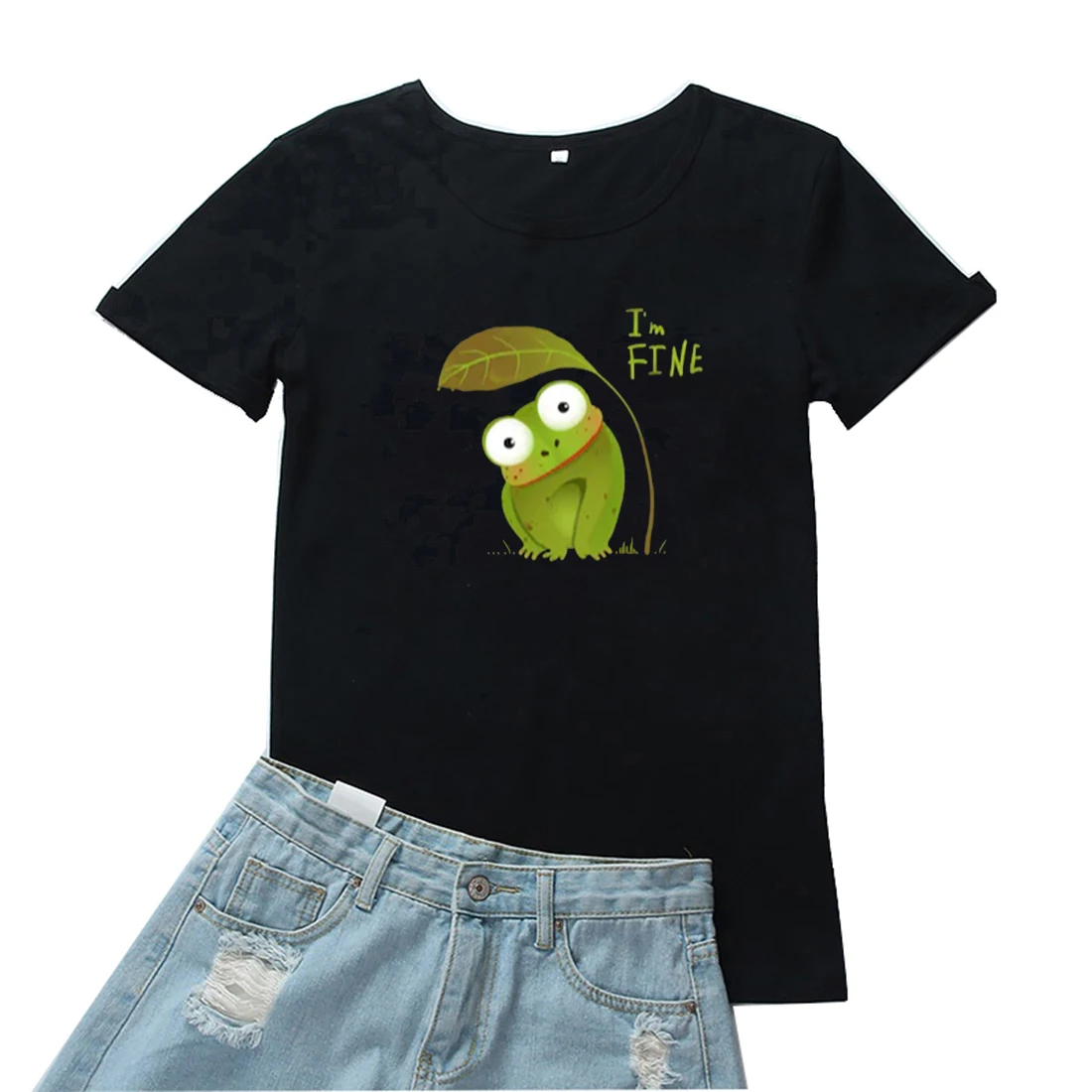 Женские футболки I'm Fine, милые женские футболки с рисунком лягушки из мультфильмов, модные топы в стиле Харадзюку, женские футболки с милым рисунком