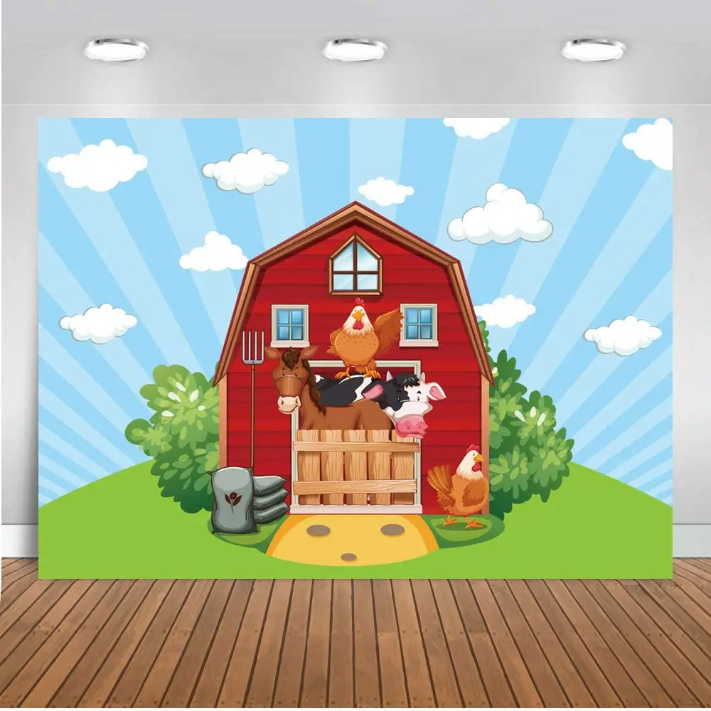 Фон для фотографирования новорожденных с изображением Красной фермы и вечерние тных
