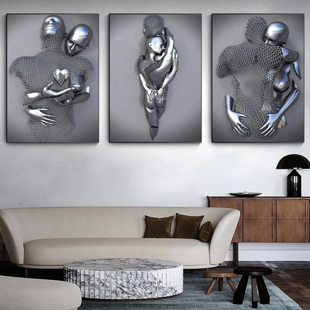 Металлическая статуэтка влюбленных пар, Художественная Картина на холсте, романтические скульптуры, плакаты и принты, Настенная картина, декор для гостиной