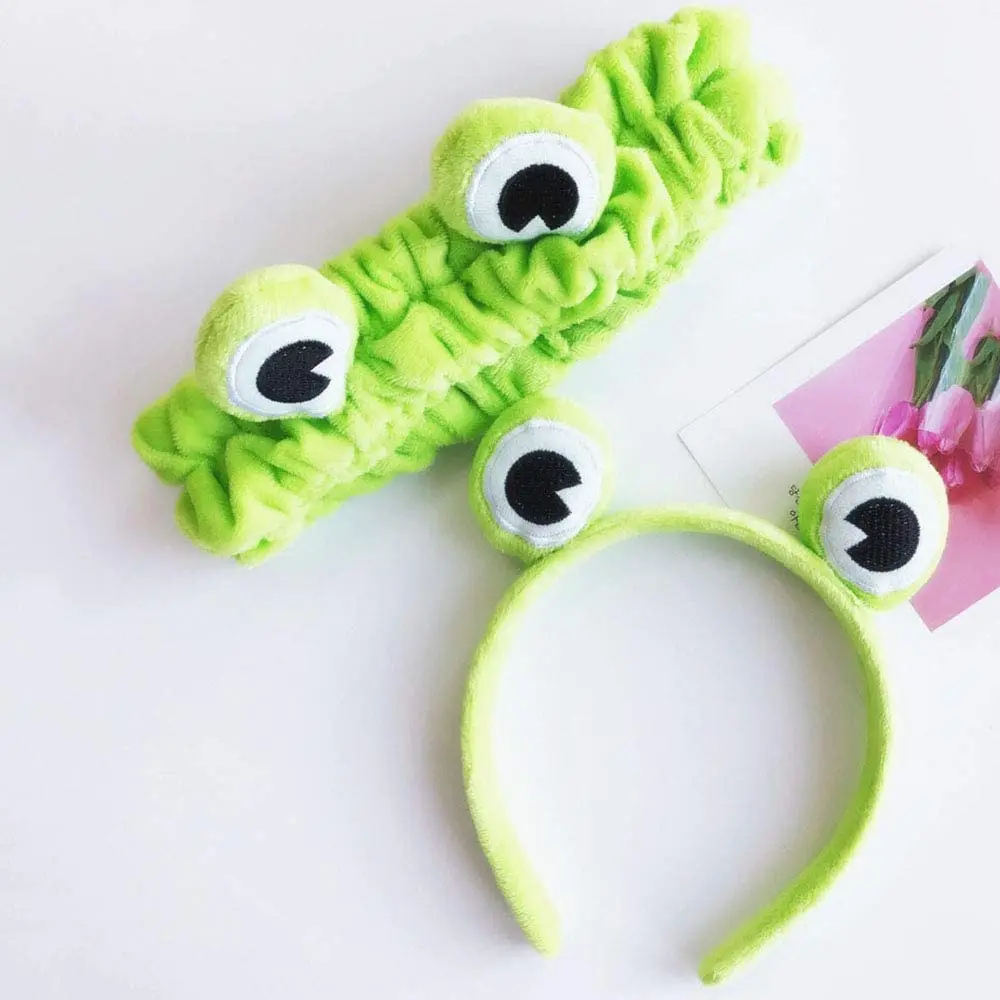 Повязка на голову с забавной лягушкой для макияжа, милые широкие эл...