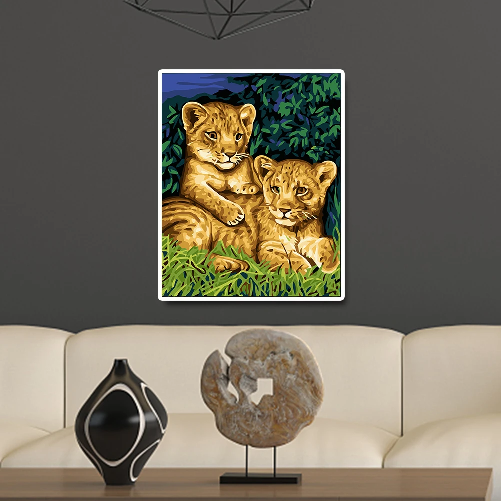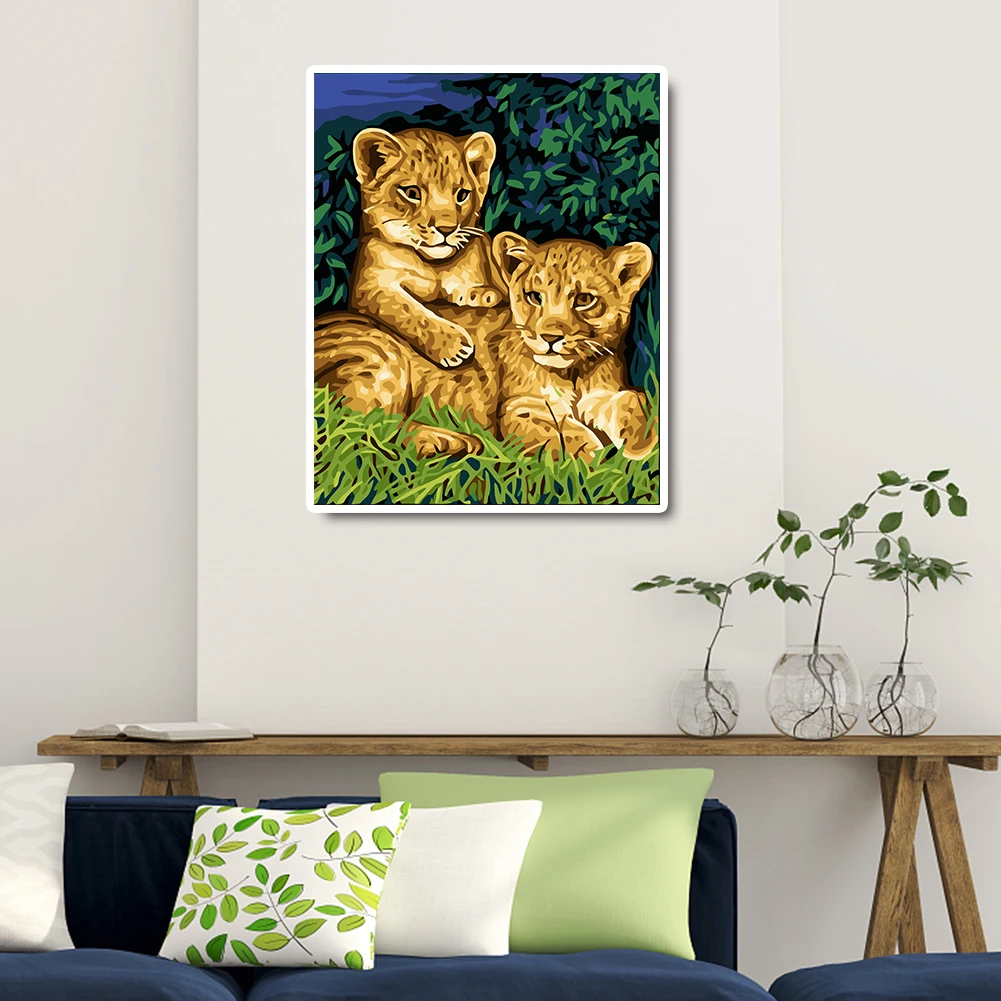 Сделай Сам живопись маслом по номерам Картина Ручная роспись Рисование акриловый Холст Два тигра современный настенный художественный Декор