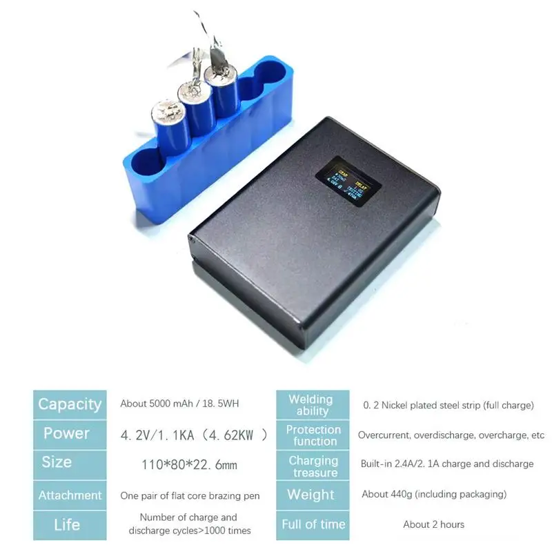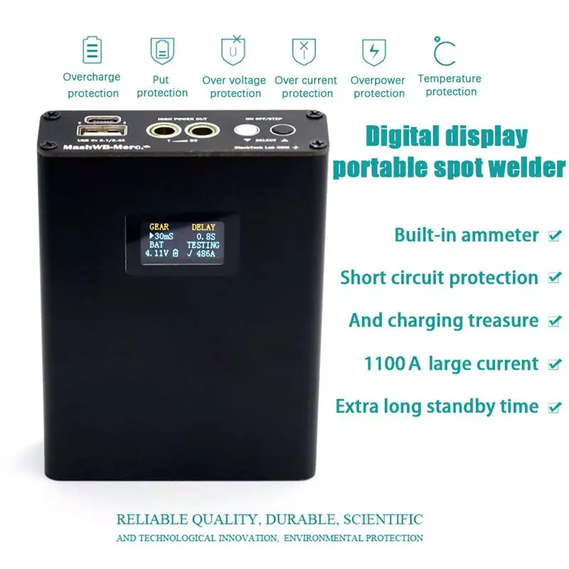 Это своего рода аппарат для точечной сварки отличного качества, компактный размер, легкий и портативный, легко помещается в карман и носит с собой. 6 передач регулируемой выходной мощности, 1-6-1 циркуляция, более точная Сварка. Медный стержень ручки с 10awg мульти-силиконовой проволокой, гуманизированный рукав для безопасного использования. Поставляется с высокой скоростью литиевой батареи, и она может непрерывно сваривать тысячи точек на 0,1-0,15 мм никелированный лист после полной зарядки. Вы можете попробовать.