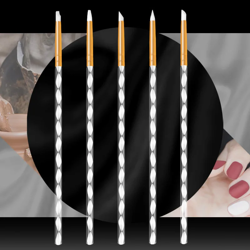 5 шт.компл. Типсы для дизайна ногтей, инструменты для маникюра, кисти, ручка, силиконовая скульптура, набор для резьбы с тиснением, двухсторонняя искусственная кожа