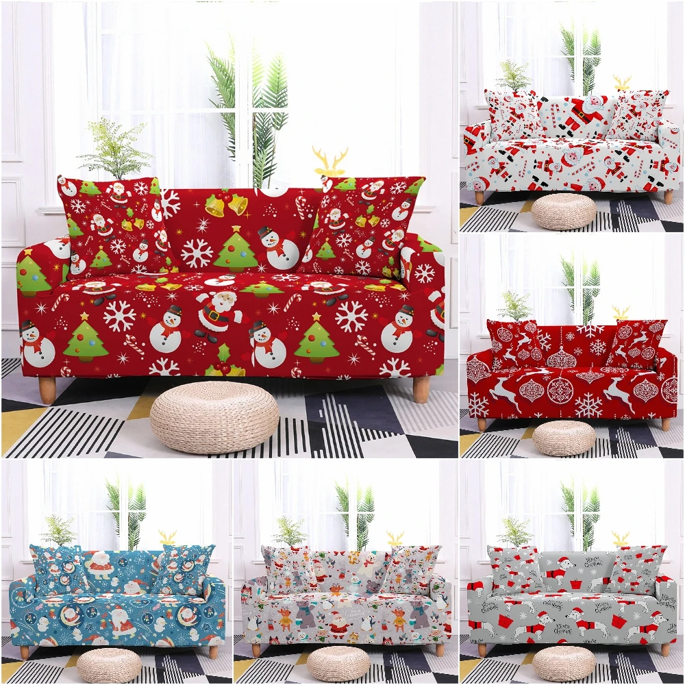 Чехол для дивана с Санта Клаусом, эластичное покрытие для дивана, полная защита мебели для гостиной, Рождество