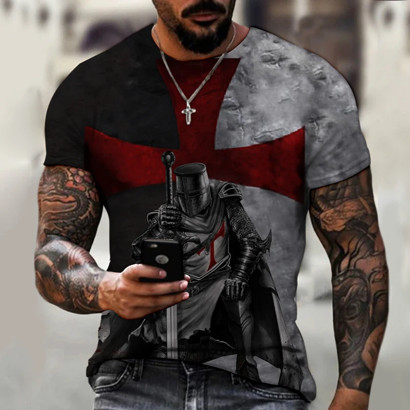Футболка мужская с 3D принтом, с рисунком самурая, рыцари, темплар, стиль ретро, европейские, американские уличные, короткий рукав
