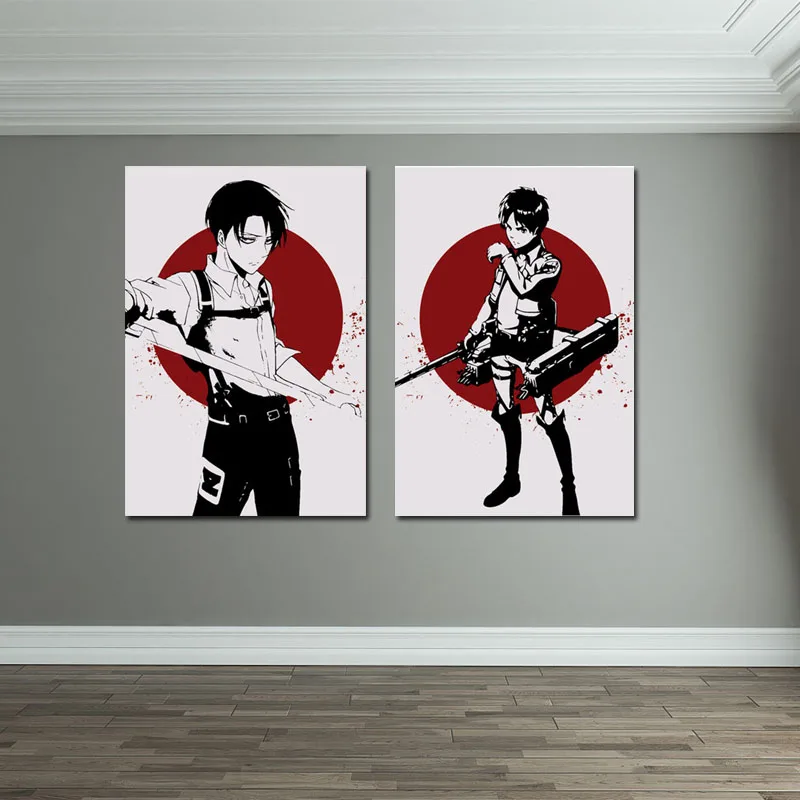 Картина на холсте атака на Титанов Эрена джагер Леви Аккермана Аним...