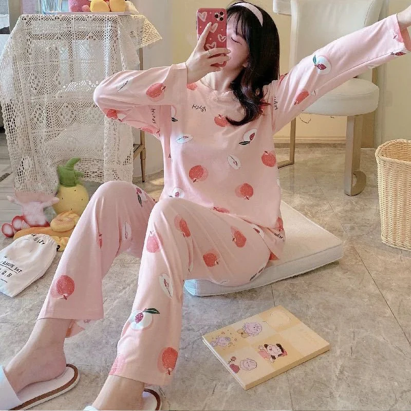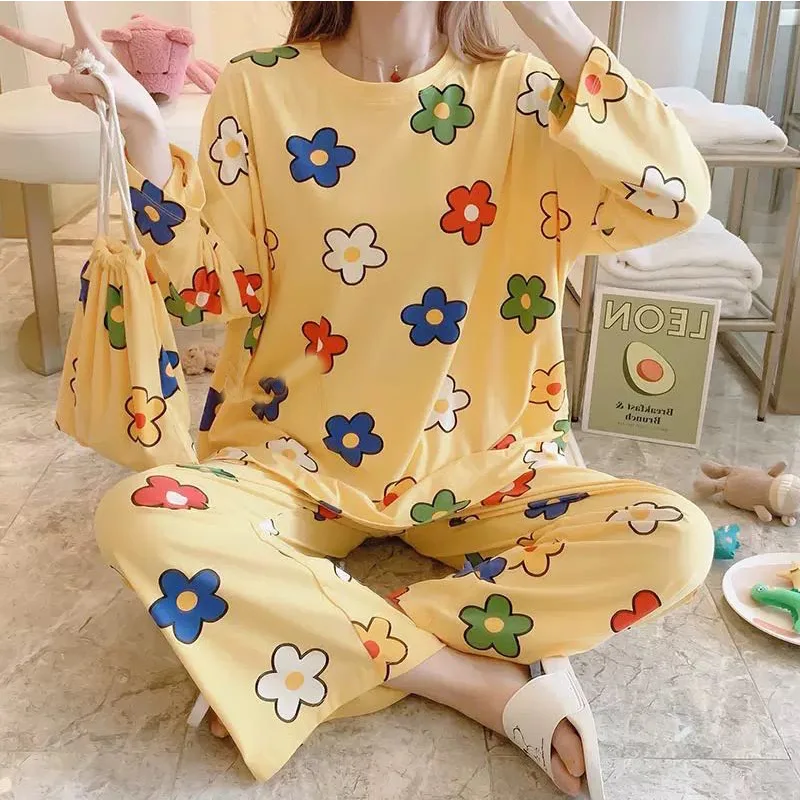 Женский пижамный комплект в Корейском стиле, осенняя футболка с дли...