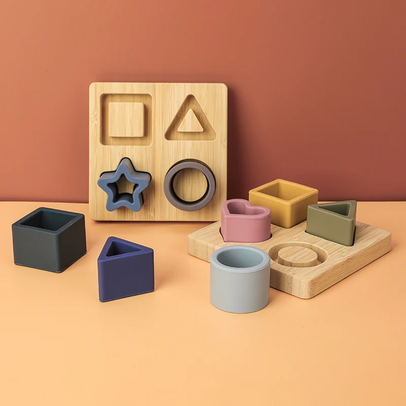 Силиконовые + деревянные геометрические фигуры, мягкие силиконовые ...