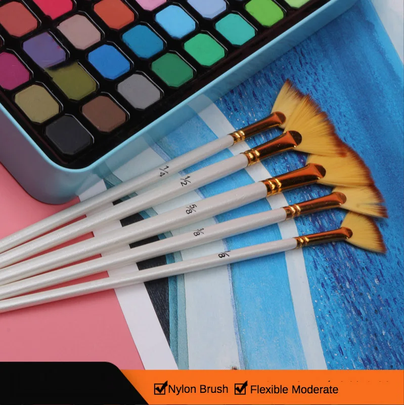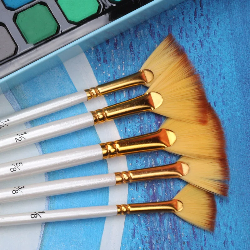 5 шт. набор Студенческая Короткая Деревянная Веерная кисть для рисования белая гуашь для рисования водой двухцветная нейлоновая акриловая ручка для рисования маслом