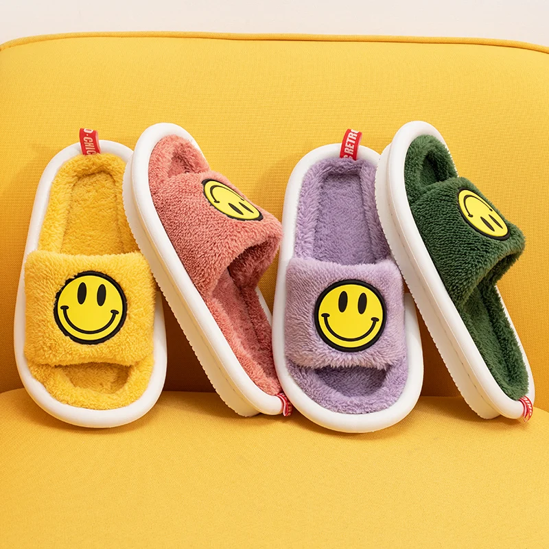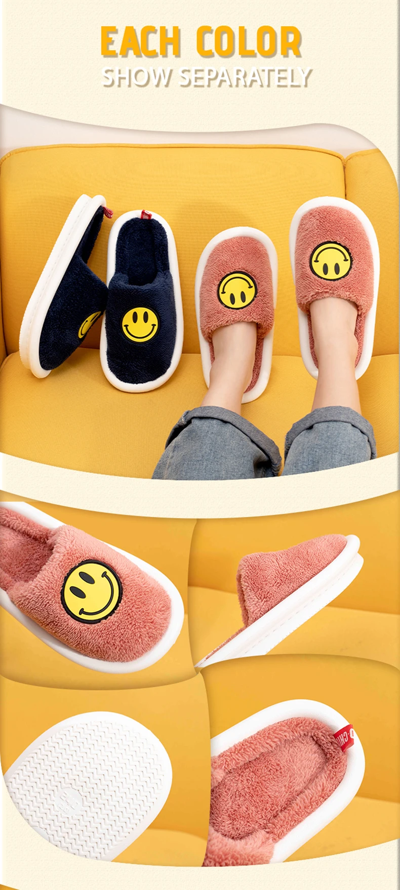 Новинка, женские домашние тапочки с улыбающимся лицом, Короткие Плюшевые флисовые туфли на плоской подошве, мужские домашние тапочки на толстой подошве, Размеры 35-45