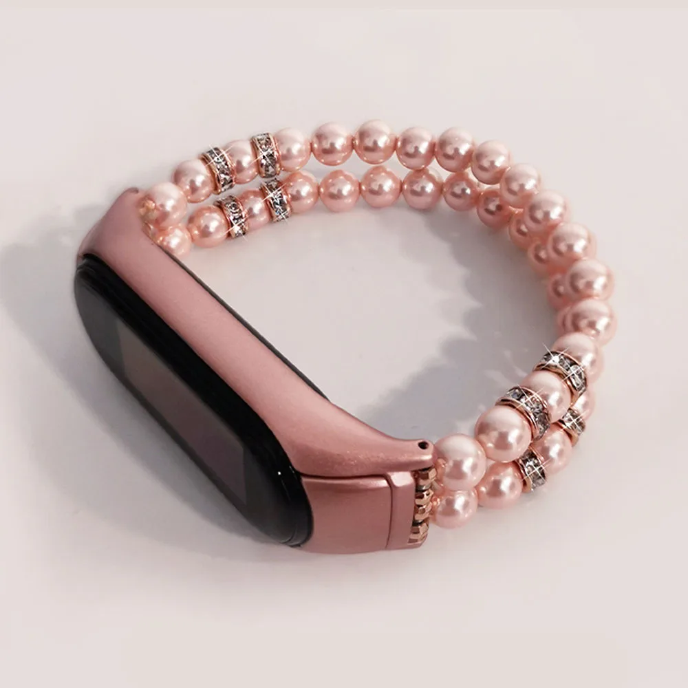 Зеленый ремешок для Mi Band 6, женский ремешок для Xiaomi Mi Band 543, браслет с нарядным жемчугом и бусинами, роскошный браслет