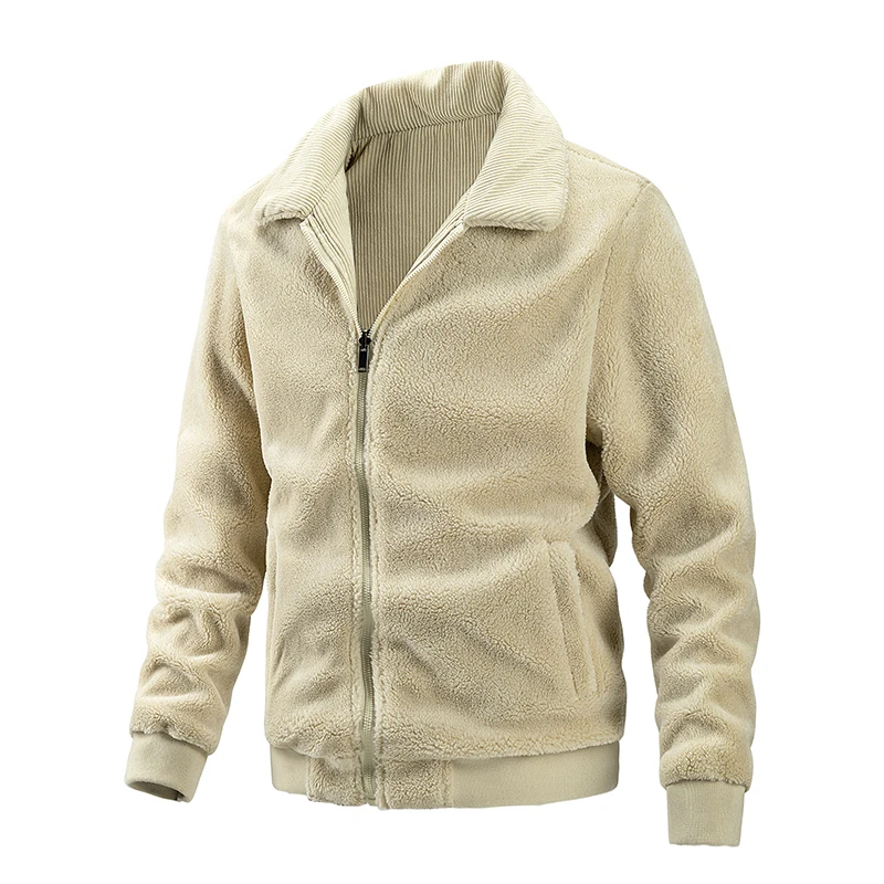 Двухсторонняя Вельветовая куртка, Мужская Повседневная однотонная Теплая мужская куртка с отложным воротником, зимняя высококачественная мужская куртка