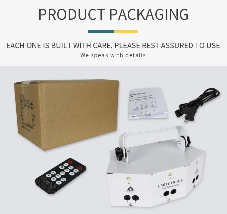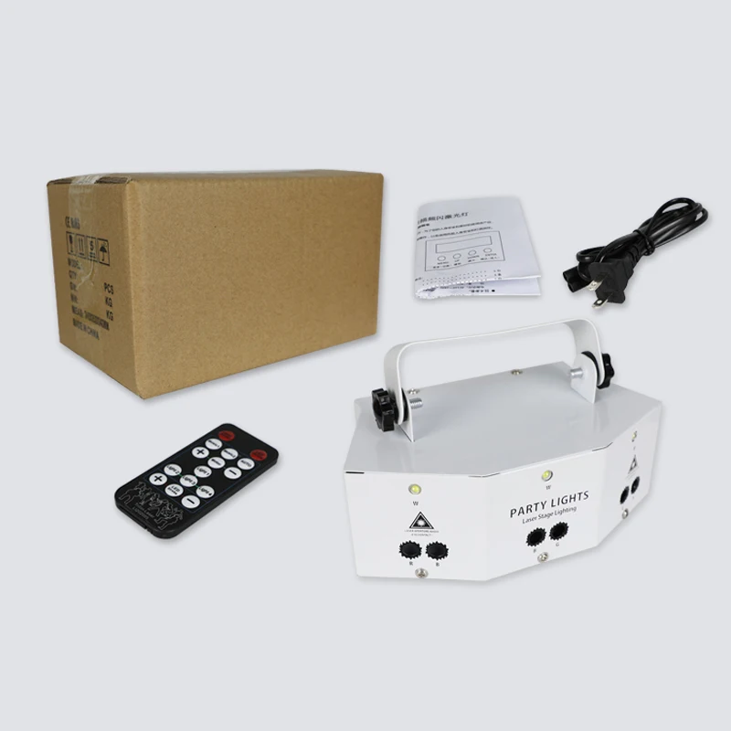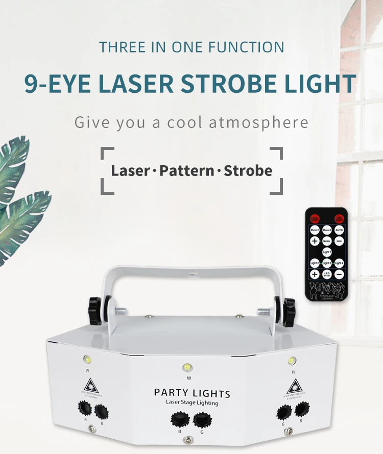 Дискотека с 9 отверстиями, лазерная проекция, сценическое освещение, светодиодная музыка, управление звуком, RGB-луч, стробоскоп, лампа для бара, KTV, украшение Вечерние
