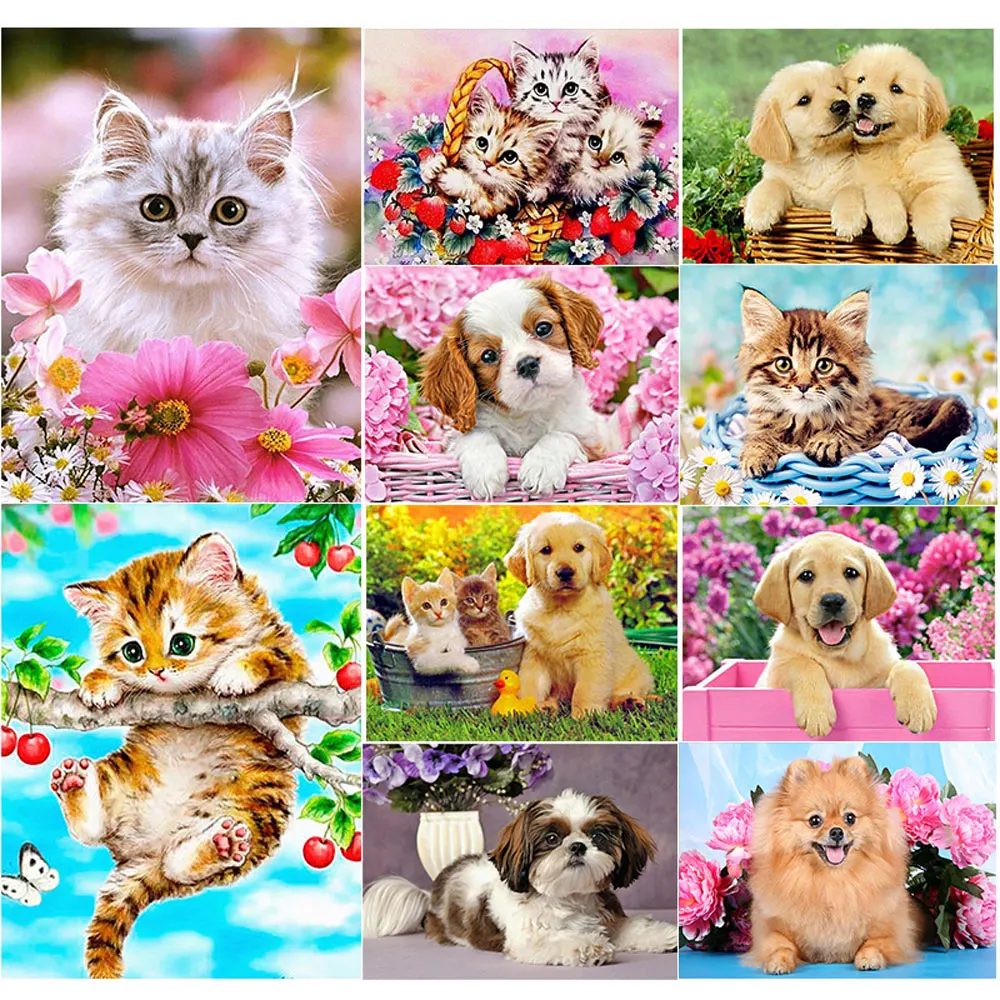 Алмазная 5D картина сделай сам, вышивка из страз, милая мозаика в виде таксы, кошки, собаки, вышивка крестиком, круглая вышивка, домашний декор, подарок