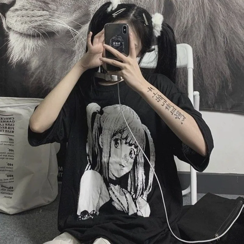 Готические футболки HOUZHOU с аниме, женские футболки в стиле Харадзюку, Волшебная футболка с коротким рукавом, Летние черные женские топы в готическом стиле