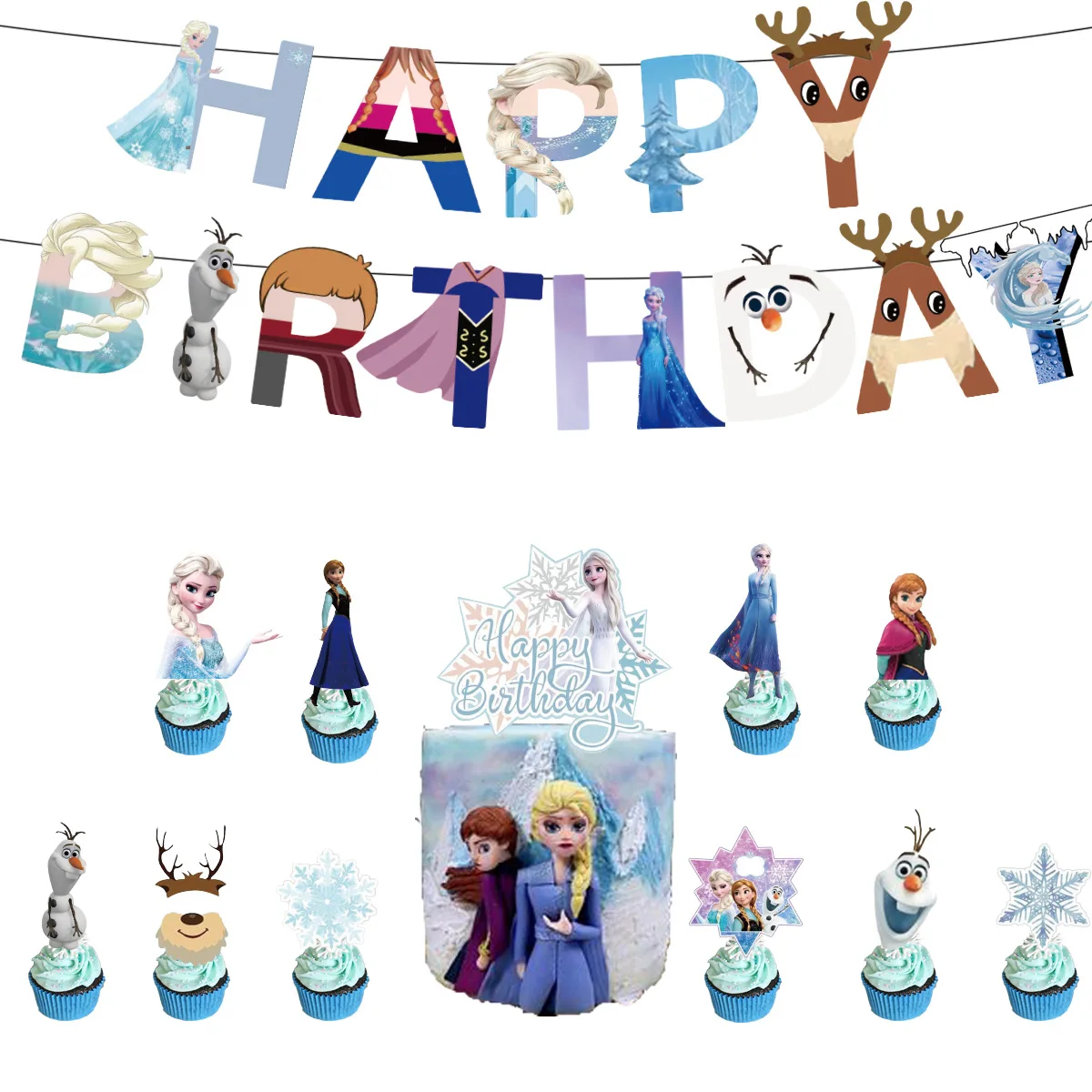 Disney, Холодное сердце, Анна, Эльза, украшение для вечеринки, воздушные шары, набор флагов для детей, для девочек, товары для вечеринки в честь Дня Рождения, детский праздник